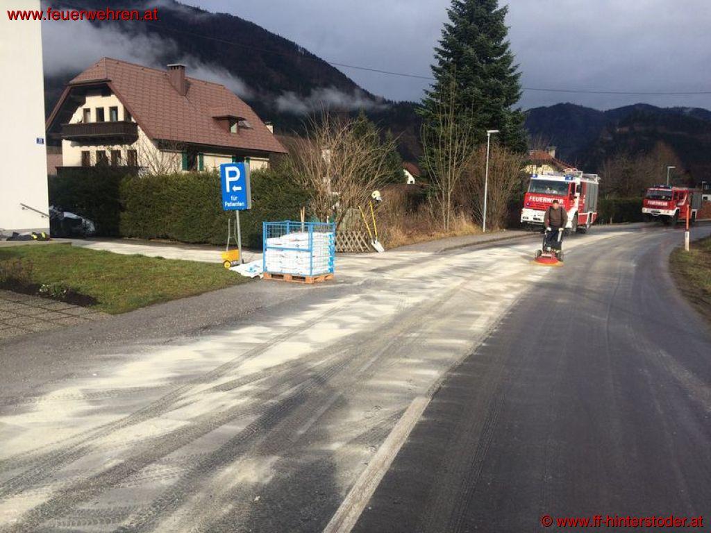 Telefonisch wurde der Kommandant der Feuerwehr Hinterstoder verständigt, dass bei einem Heizöltank überfüllt wurde und einige Sack Ölbindemittel gebraucht werden.
