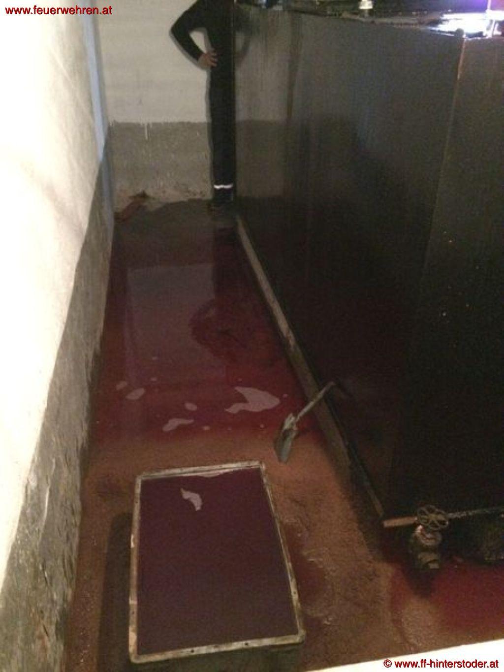 Nach Kontrolle durch BI Peter Schoisswohl jun. stellte sich heraus, dass einige hundert Liter überfüllt wurden. Sofort wurde die gesamte Feuerwehr alarmiert. Einerseits wurde das Heizöl gebunden, welches sich über eine zweite Leitung am Parkplatz und auf der Landesstraße verteilt hat. Andererseits musste das Öl in den Kellerräumen gebunden werden sowie die getränkten Gegenstände aus dem Keller transportiert werden.