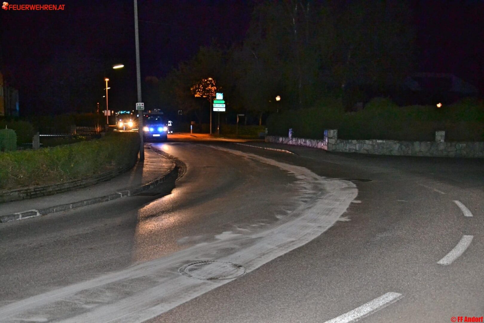 Im Bereich der Volksbank Andorf überfuhr eine Lenkerin heute kurz vor Mitternacht eine Verkehrsinsel und beschädigte dabei die Ölwanne ihres Fahrzeuges. Der Schaden an ihrem Fahrzeug blieb aber vorerst unbemerkt und so zog sich eine massive Ölspur über das gesamte Ortsgebiet von Andorf.