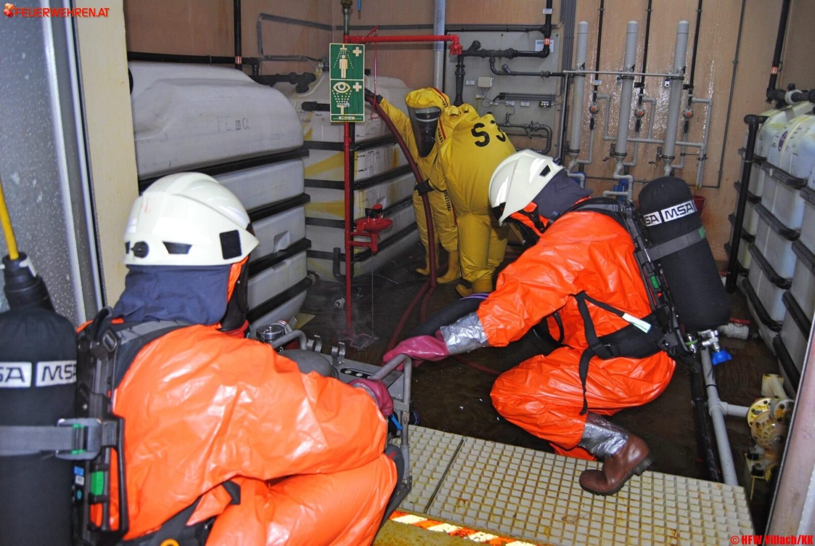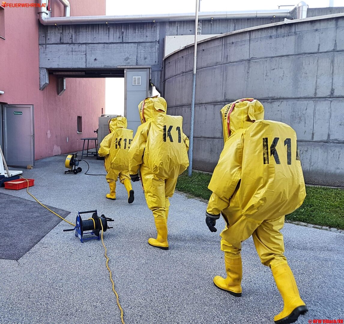Kurz nach 15 Uhr wurde die Hauptfeuerwache Villach gemeinsam mit der FF Perau zu einem Chemikalienaustritt in die Kläranlage Villach alarmiert. Als wir am Einsatzort eintrafen mussten wir feststellen dass einige Zentimeter hoch 33% Salzsäure in einem Chemikalienlagerraum ausgetreten waren. Vermutlich war es im Zuge des Betankungsvorganges zu einem technischen Defekt gekommen, erläutert Einsatzleiter HBI Harald Geissler.