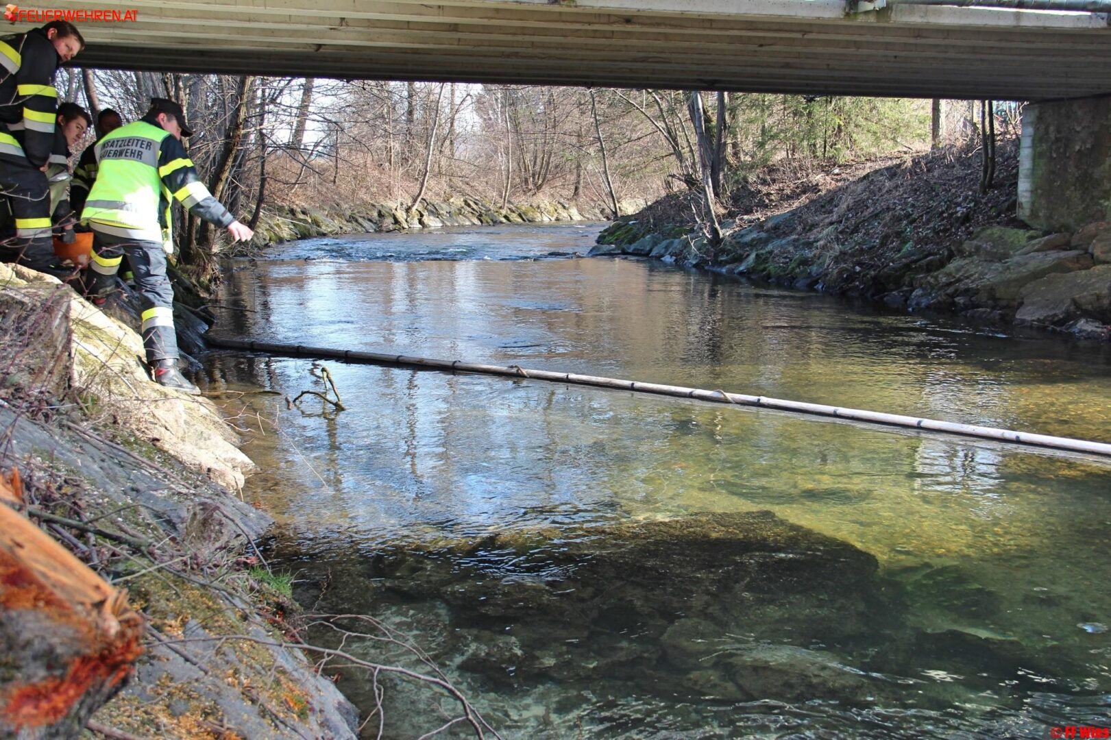Nach der Ersterkundung der FF Wies wurden sofort 4 Ölsperren in diesem Seitenbach errichtet und 2 weitere in der Weißen Sulm. Weiteres wurden die Feuerwehren Pölfing-Brunn, Dietmannsdorf i. Sulmtal, Prarath und Deutschlandsberg nachalarmiert um weitere Sperren in der Weißen Sulm in Richtung Gasselsdorf zu errichten.