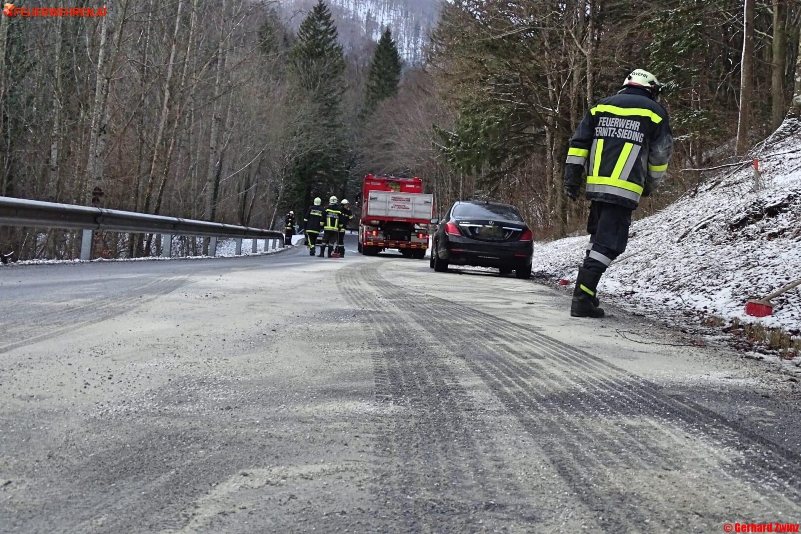 Am Christtag wurde die Feuerwehr Ternitz-Sieding zu einer Ölspur auf die Bundesstraße 26 zwischen Stixenstein und Puchberg gerufen. Am Einsatzort angekommen stellte sich heraus, dass ein Fahrzeuglenker mit seinem Mercedes über einen Stein in einer unübersichtlichen Kurve gefahren ist und sich dabei die Ölwanne aufgerissen hat.