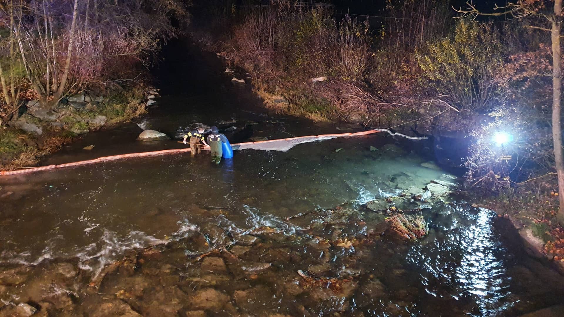 Für jenes Öl, das schon vor dem Errichten der Sperre weiter flussabwärts geflossen war, war der Weg allerdings ebenfalls schon nach etwa 1 Kilometer zu Ende, denn dort befand sich glücklicherweise noch die Ölsperre vom letzten Einsatz. Auch dort wurde das gebundene Öl noch abgeschöpft, wobei der Einsatz der Zillen der Feuerwehr Andorf erforderlich war.