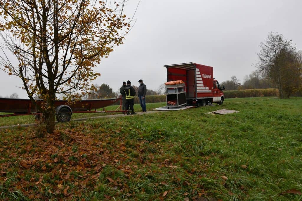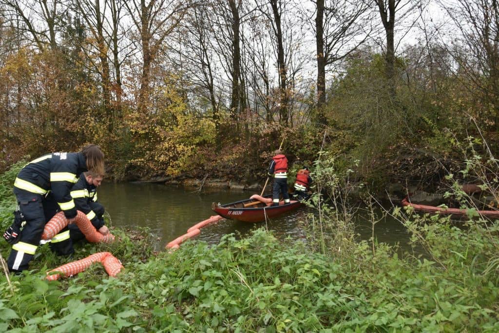 Um die Ausweitung der Kontamination über den Fluss zu verhindern, lautete der nächste behördliche Auftrag für die Feuerwehr Andorf, Ölsperren auf der Pram zu errichten. Weitere Ölsperren, sowie eine Ruderzille der Feuerwehr Andorf wurden vom Einsatzleiter angefordert und mittels LAST Fahrzeug und zugehörigen Rollcontainer an die Einsatzstelle verbracht.