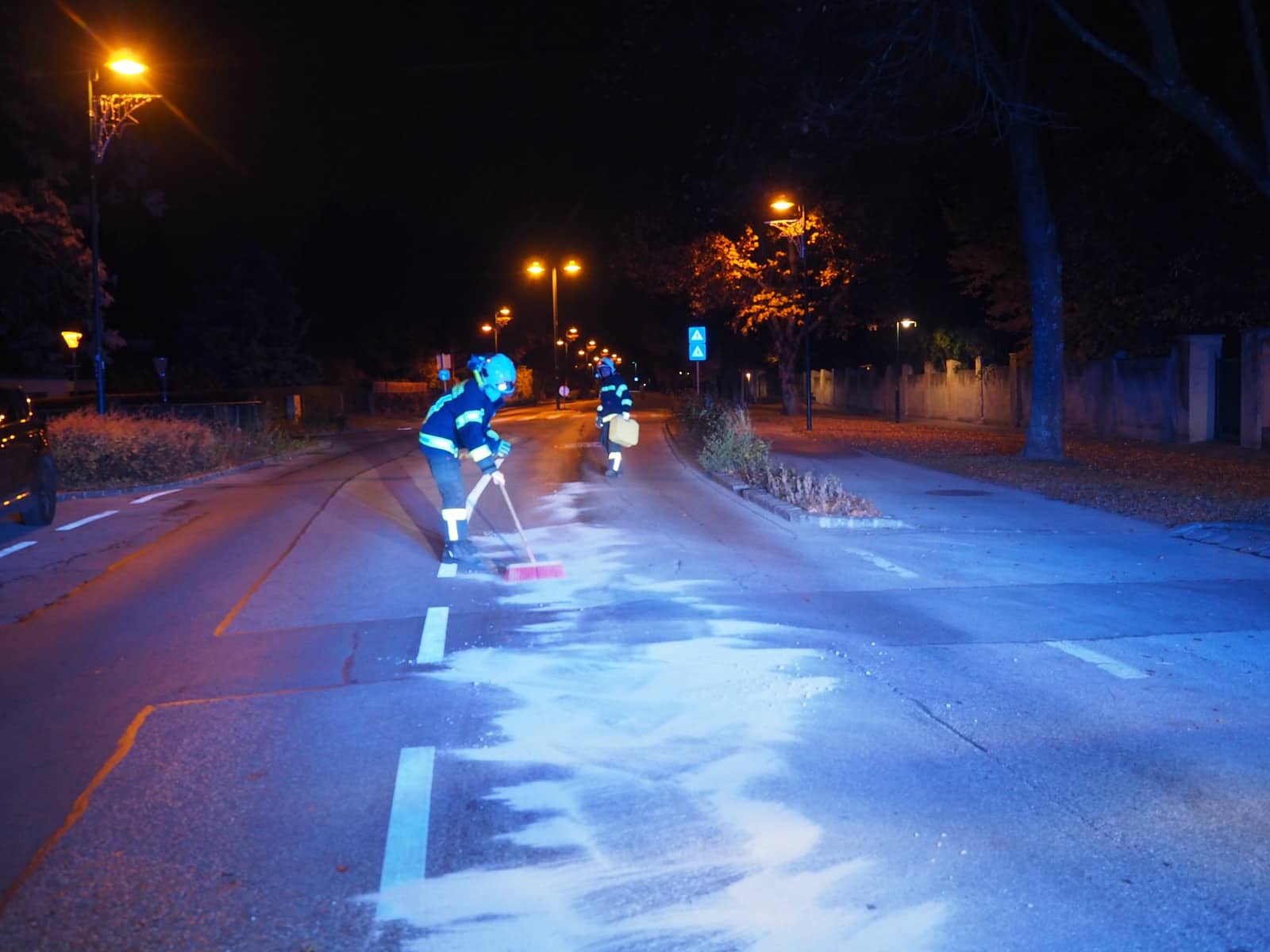 Am 13.11.2021 um 19.13 Uhr wurde die FF Biedermannsdorf zu einem Einsatz in die Laxenburger Straße in Richtung Kreisverkehr B11 alarmiert. Es musste eine 400 Meter lange Ölspur gebunden werden, welche ein Fahrzeuglenker nach einem Zusammenstoß mit einem Randstein, bei dem die Ölwanne seines Fahrzeuges beschädigt wurde, verursacht hatte.
