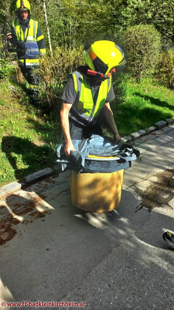 Nach der Erkundung konnte ein Chlorgasunfall ausgeschlossen werden. Es kam aber in der Wäscherei aus unbekannten Gründen zu einem Austritt eines chemischen Stoffes aus einem Lagerbehälter mit darauffolgender Reaktion (Schäumung und Dampfbildung). In Absprache mit dem Landeschemiker wurden die Gefahrgutbehälter ins Freie verbracht und die ausgetretene Flüssigkeit neutralisiert.