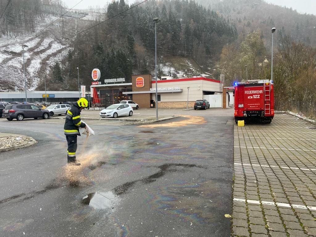 Zum zweiten Einsatz wurden die FF Kapfenberg-Diemlach um 14:41 Uhr alarmiert. Ein Fahrzeug hat auf einem Parkplatz und dann in weiter Folge auf der B116 eine größere Menge Öl verloren. Der ausgelaufene Schadstoff wurde von uns gebunden. Nach 2 Stunden konnten die Einsatzkräfte wieder ins Rüsthaus einrücken.