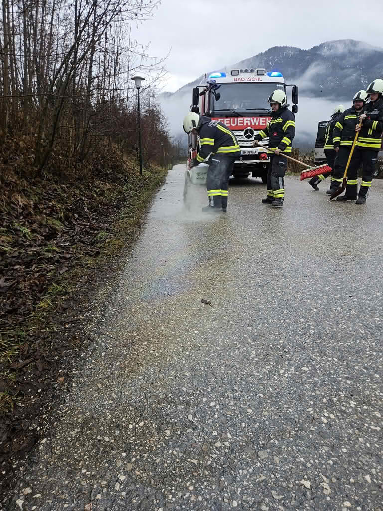 Am Montag gegen 09:30 Uhr meldete ein Passant eine Dieselspur im Maria – Theresienweg. Umgehend rückten die Kräfte der Feuerwache Reiterndorf und der Hauptfeuerwache Bad Ischl zum Einsatzort aus. Nach der Lageerkundung durch den Einsatzleiter stellte sich heraus, dass die Spur über die Bachgasse bis nach Eck führte. Somit wurden auch noch die Florianis aus Perneck zur Unterstützung nachalarmiert.