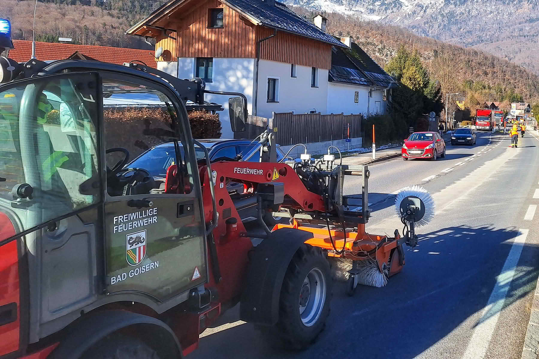 Seitens der Polizei wurden daraufhin die Feuerwehren Bad Goisern und Weissenbach zur Beseitigung des Schadstoffaustritts alarmiert. Entsprechend groß war folglich jene Menge Ölbindemittel, mit der die Einsatzkräfte die Ölspur abstreuen mussten, um so die Rutschgefahr und Umweltverschmutzung zu beseitigen.