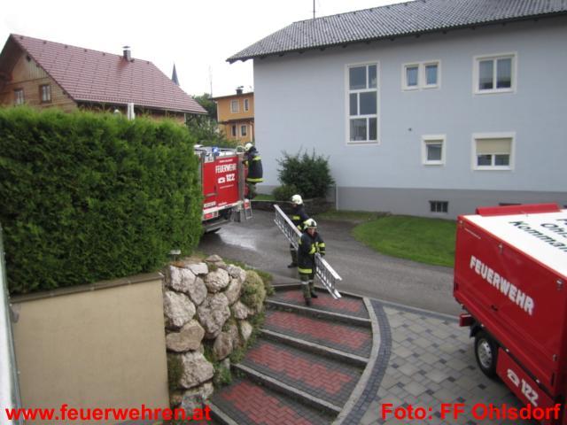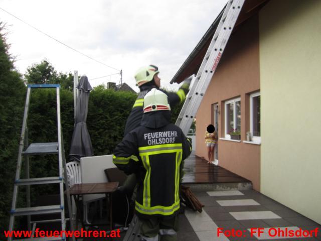 Während eines starken Gewitters am Mittwoch, den 13. Juli 2011 wurde die Feuerwehr Ohlsdorf dankenswerterweise nur per Pager zu einer Tierrettung alarmiert. Ein Hausbesitzer alarmierte die Feuerwehr, da die Kinder vor dem Gewitter mehrere Vögel in einer Dachrinne sahen und diese irgendwie feststeckten.