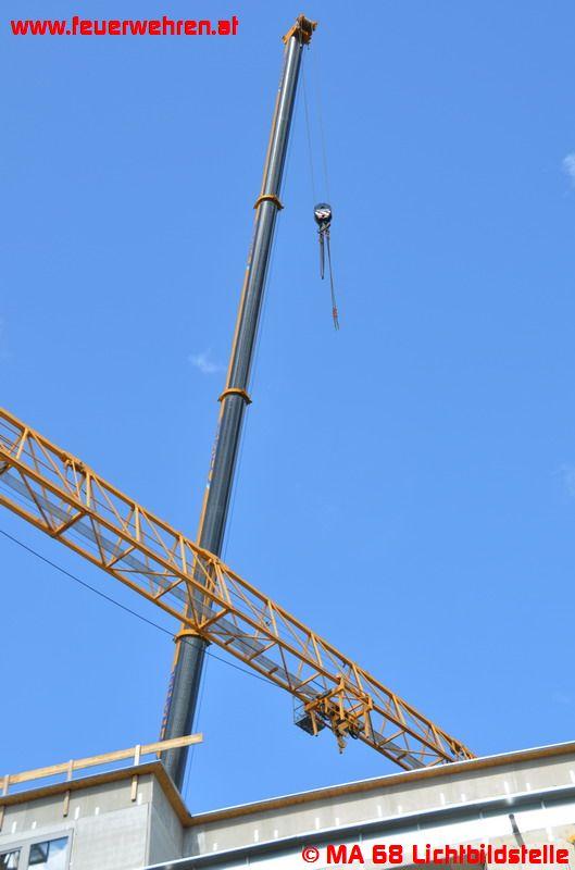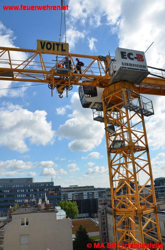 Heute in der Früh wollte eine Kranfirma einen Turmdrehkran im 10. Bezirk abbauen. Bei dem Versuch dies durchzuführen, wurden die Monteure von zwei ausgewachsenen Krähen attackiert und eine Demontage war vorerst nicht möglich. Wie sich herausstellte, befand sich auf dem Kran in etwa 25 Meter Höhe ein Krähennest mit zwei Jungtieren. Es wurde daher die Berufsfeuerwehr Wien alarmiert und die Lage erkundet.