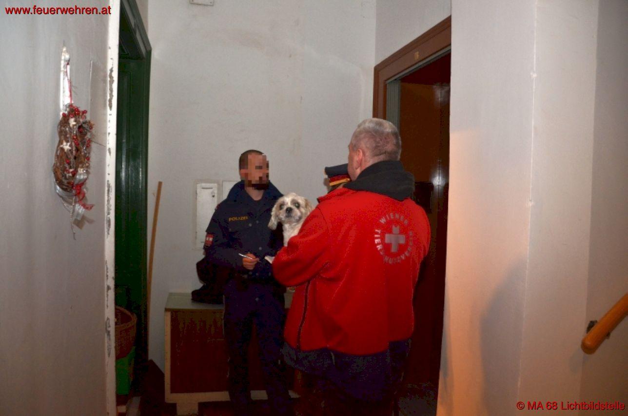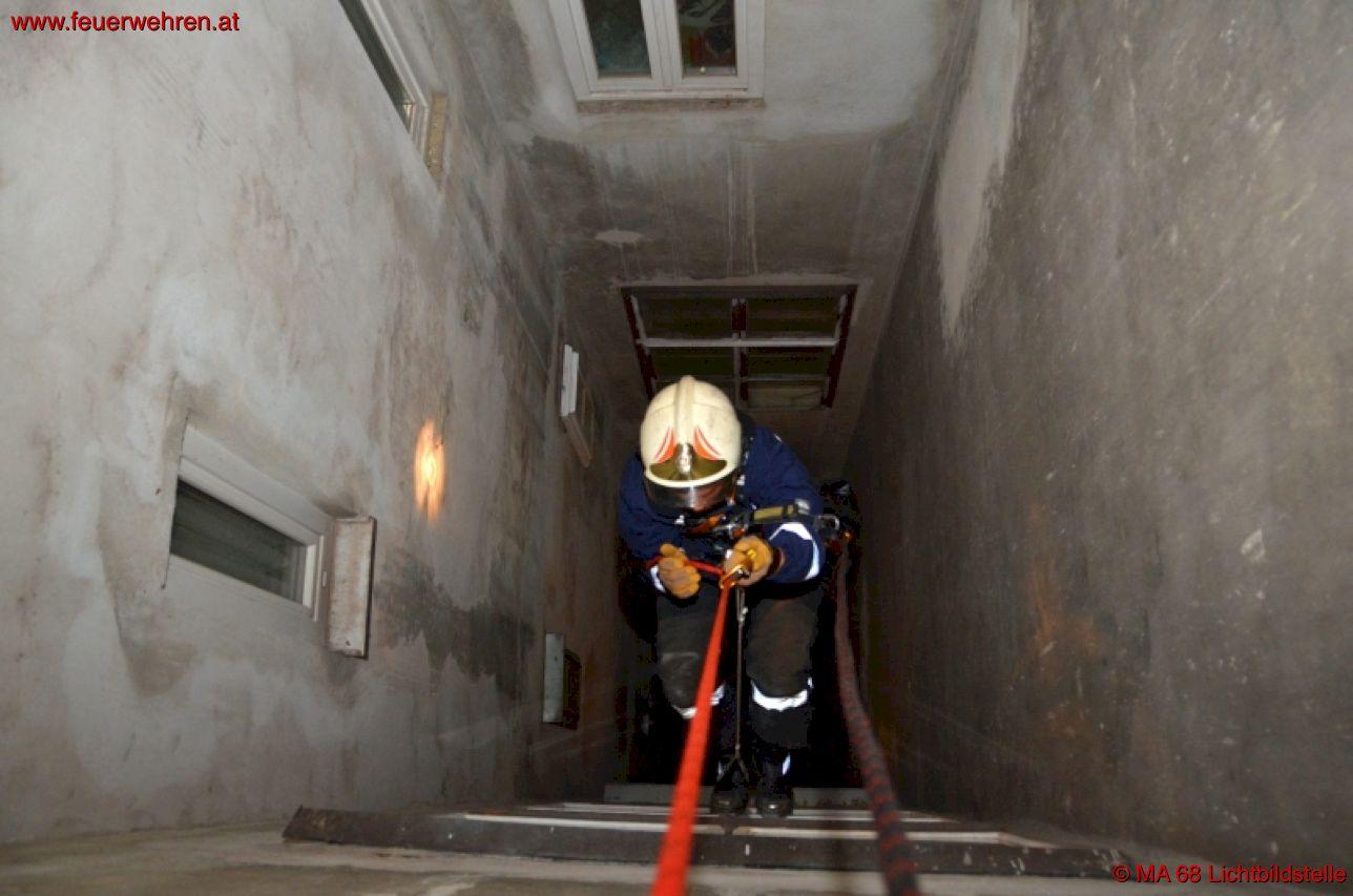 Eine Bewohnerin wurde auf das Tier aufmerksam und verständigte die Berufsfeuerwehr Wien. Da der Lichtschacht nicht anders zugänglich war, seilte sich ein Feuerwehrmann etwa 15 Meter zu dem Hund ab und konnte ihn so befreien. Das augenscheinlich unverletzte Tier wurde an die Tierrettung übergeben.