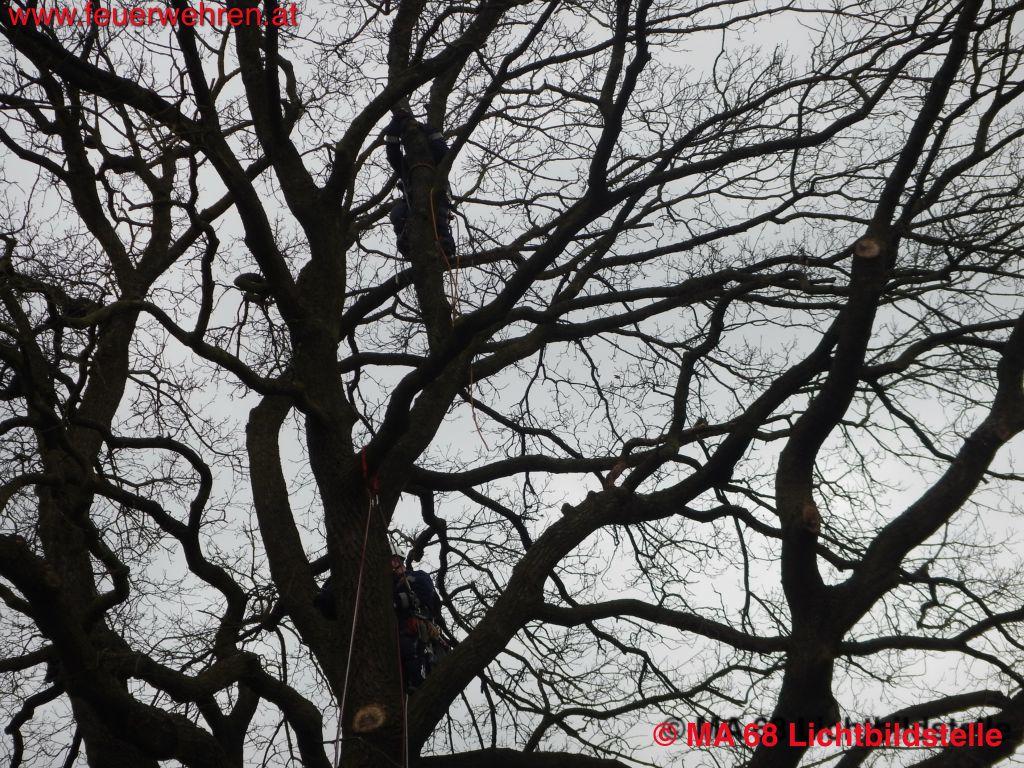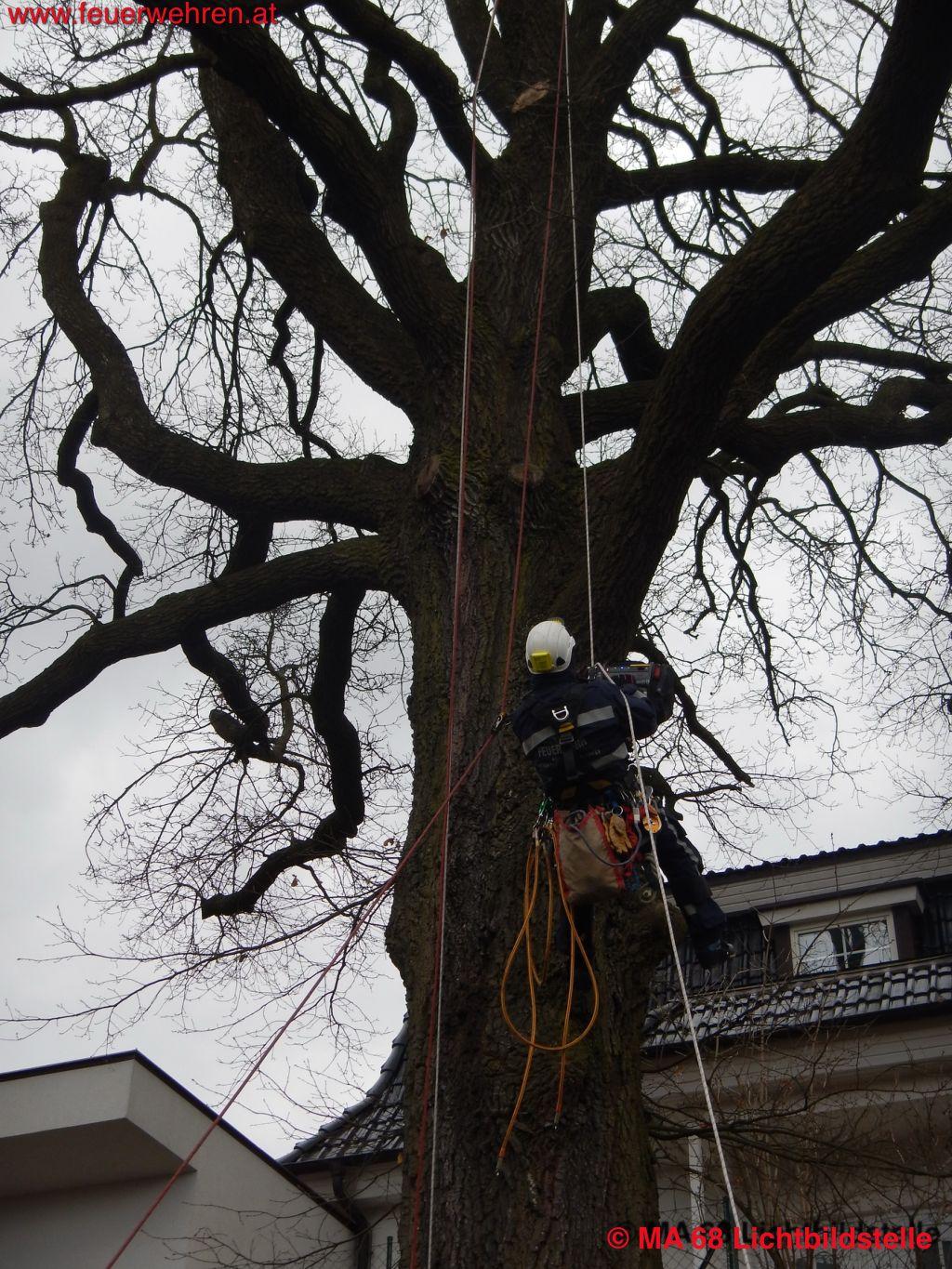 Von der besorgten Katzenbesitzerin wurde auch eine Mitarbeiterin der Tierrettung verständigt, welche angab, dass die Katze den Baum nicht mehr selbstständig verlassen können wird. Da der Baum nicht mit einer Drehleiter angefahren werden konnte, ersuchte die FF Kierling die Wiener Berufsfeuerwehr um Unterstützung.