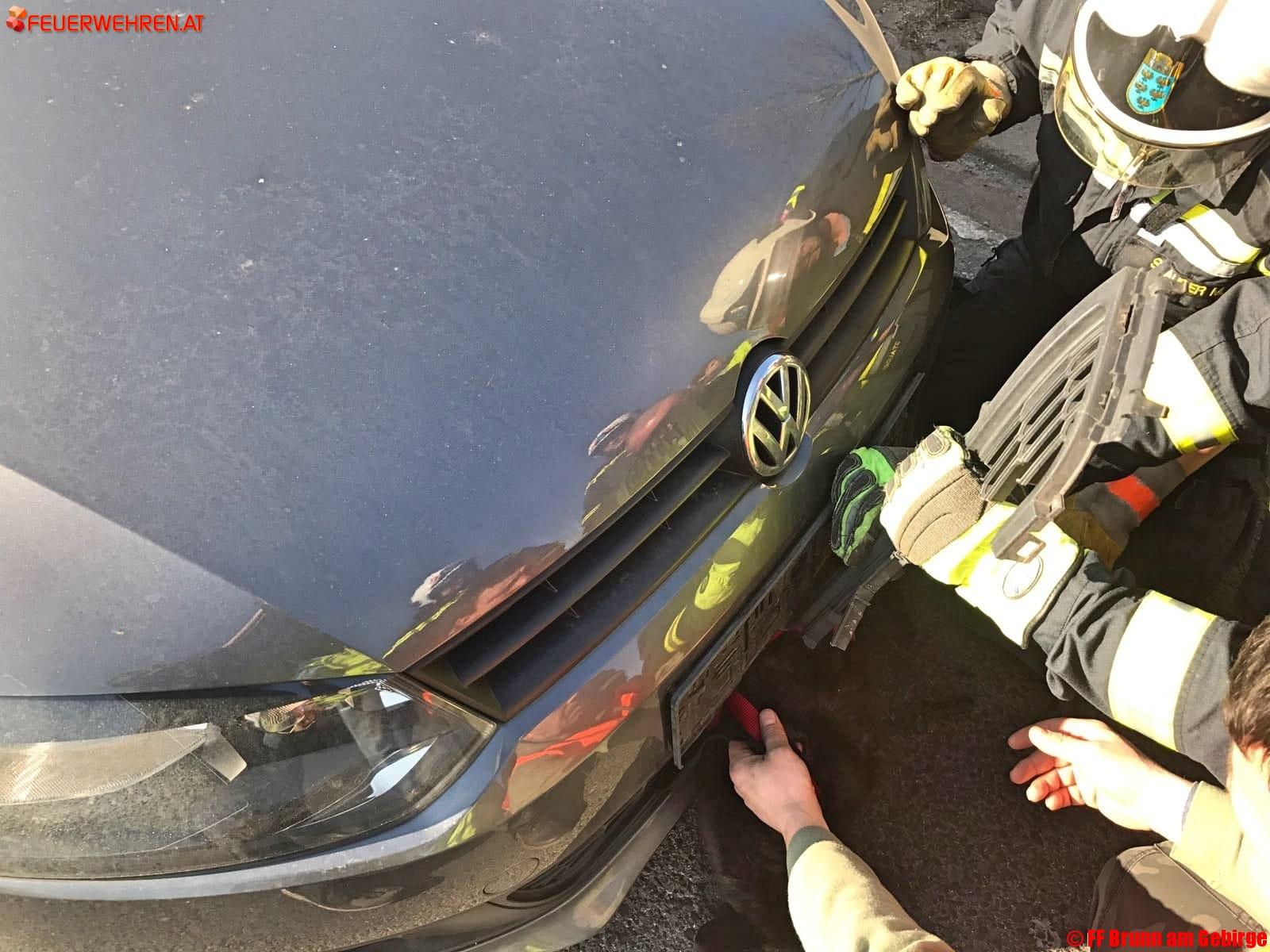An Ort und Stelle wurden Teile der Plastikverkleidung mit einigen geschickten Handgriffen schonend entfernt, sodass der Hund sanft aus seiner misslichen Lage befreit werden konnte. Anwesende Unfallzeugen erklärten sich, nach der Kontaktaufnahme mit dem Hundebesitzer, anschließend bereit den unbestimmten Grades verletzten Vierbeiner zur Untersuchung ins Tierschutzhaus Vösendorf zu bringen.
