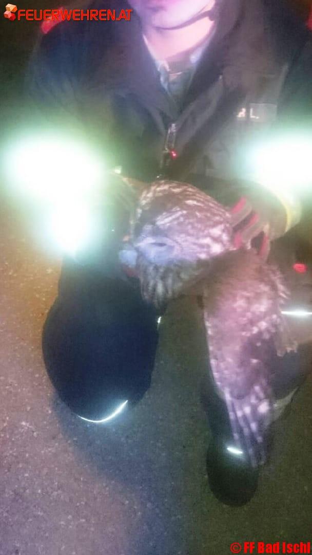 Heute Abend bemerkte ein Bewohner eines Hauses am Haischberg, dass eine Eule aus seinem Kamin schreit. Deshalb rief er telefonisch in der Zeugstätte der Freiwilligen Feuerwehr Bad Ischl um Hilfe.