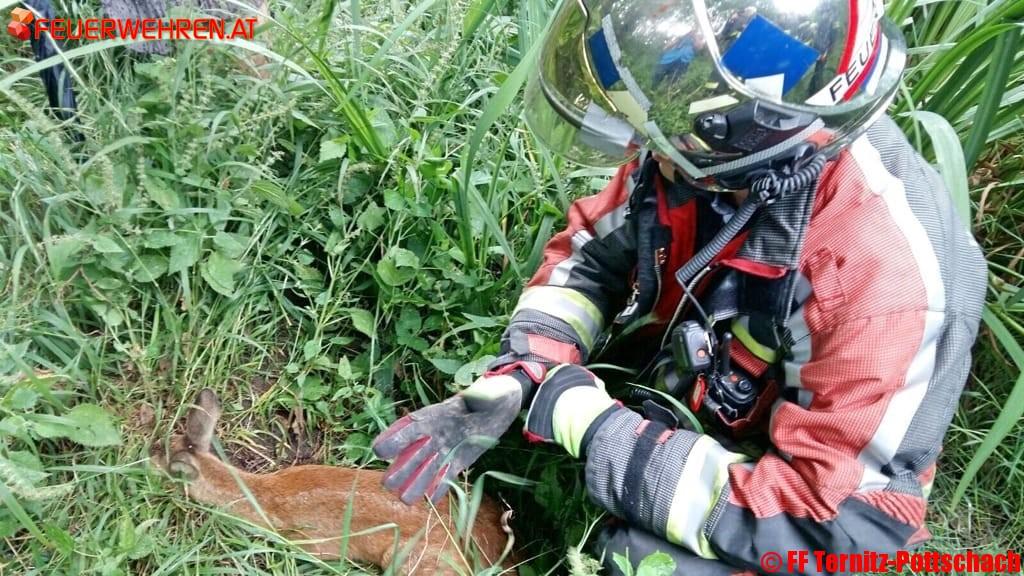 Die Feuerwehr Pottschach befreite das Rehkitz aus dem Netz und es konnte ihren Weg fortsetzen.