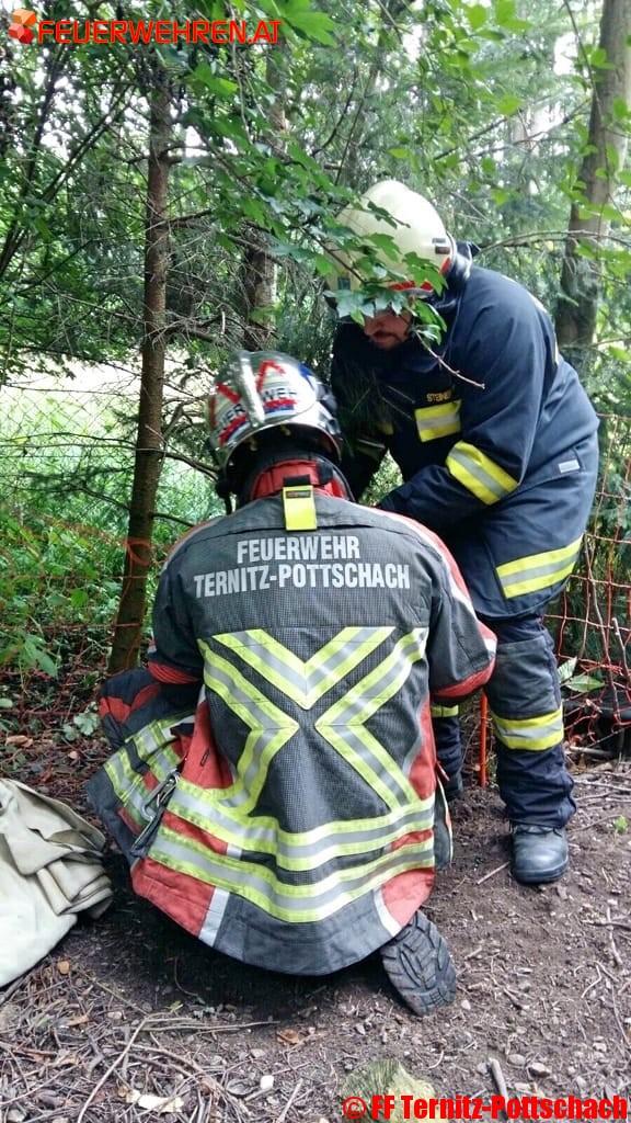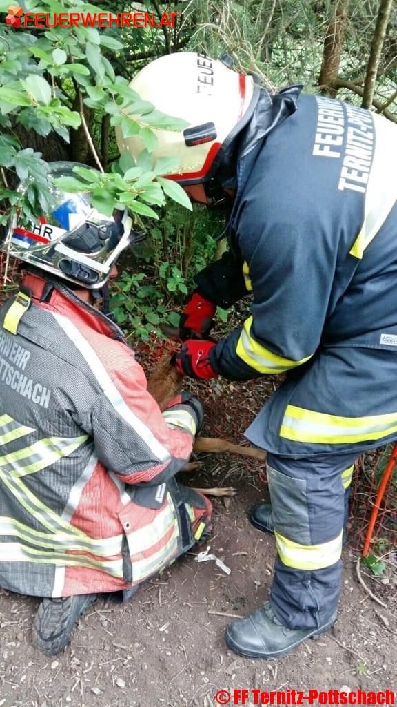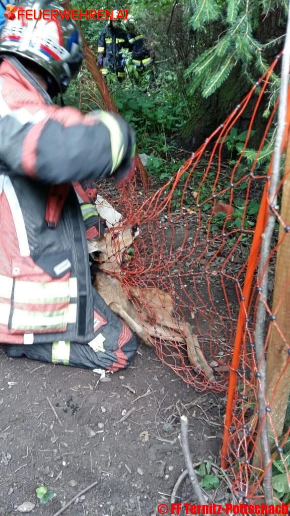In den Mittagsstunden des 26.7.2017 wurde die Feuerwehr Ternitz-Pottschach zu einer Tierrettung in die Angerstrasse gerufen. Ein Reh hatte sich in einem Netz verfangen und konnte sich selbst nicht mehr befreien.