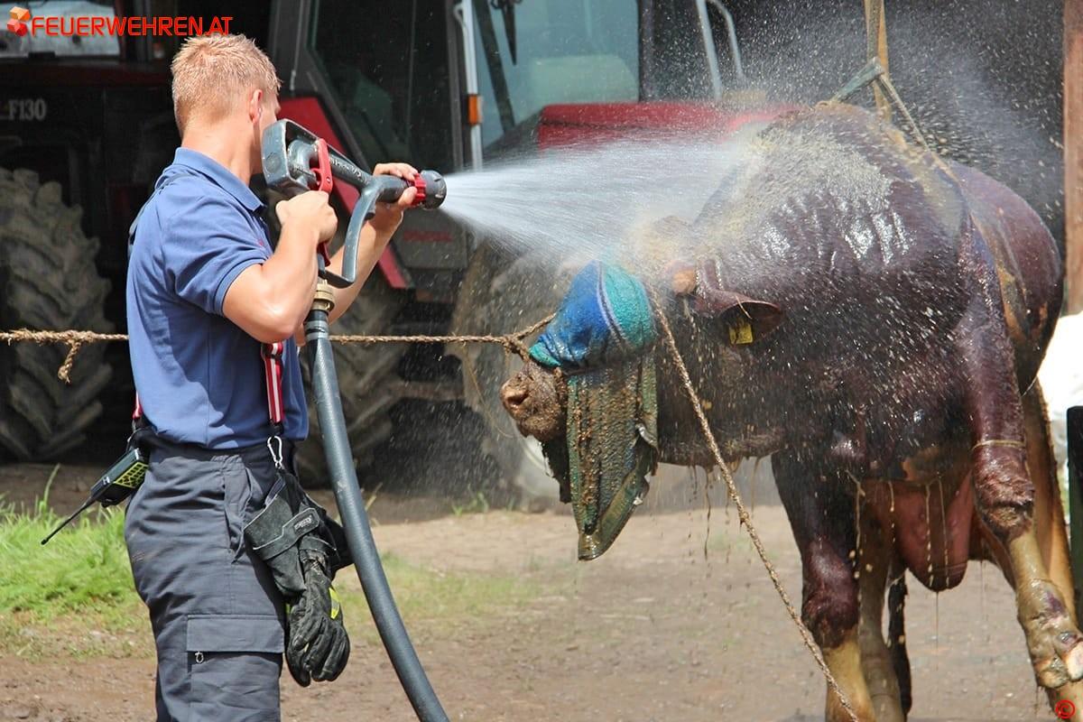 Nach rund 5 Stunden waren alle 4 Stiere geborgen und wohl auf. Die Feuerwehren waren noch bis in die Abendstunden mit der Reinigung der Gerätschaften beschäftigt.