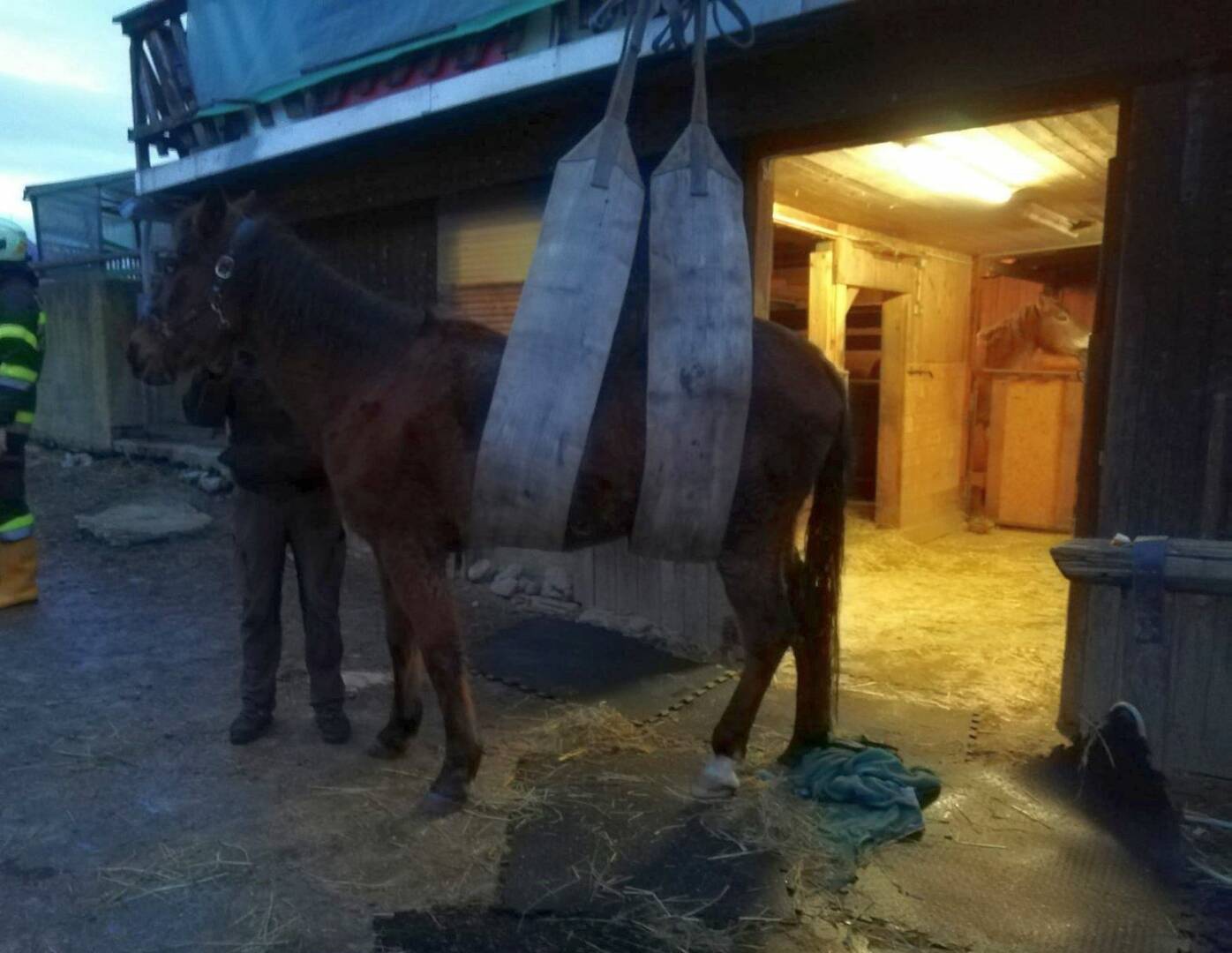 Mehrfach bemühten wir uns, gemeinsam mit den Besitzern die liebe Lisi, so der Name des Pferdes, wieder auf die Beine zu stellen. Die Bemühungen um Lisi waren von Erfolg gekrönt, sie konnte wieder selbstständig stehen. Vom Tierarzt erhielt sie noch eine Infusion um ihren Kreislauf zu stabilisieren. Nach rund 2 Stunden konnten die Feuerwehrkameraden/innen wieder ins Rüsthaus einrücken.