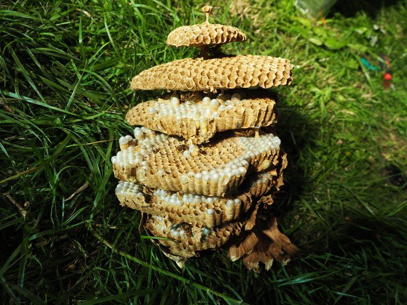 Das Nest wurde ab- und wieder aufgebaut, sowie anschließend gemeinsam mit den geschützten Tieren in einer Schwarmbox zu einem entfernten Waldstück gebracht. So konnte das Überleben des Hornissenvolkes gesichert werden.