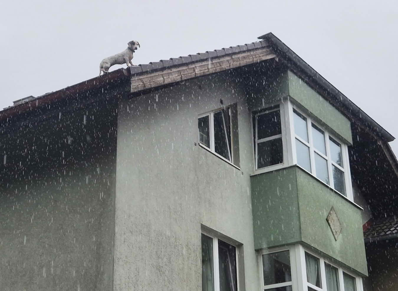 Da trauten wohl einige Leute ihren Augen nicht, als sie am heutigen Samstagvormittag (26.07.2025) bei strömenden Regen einen Hund auf einem Dach einer mehrstöckigen Wohnhausanlage in Altenmarkt a.d. Triesting erblickten.