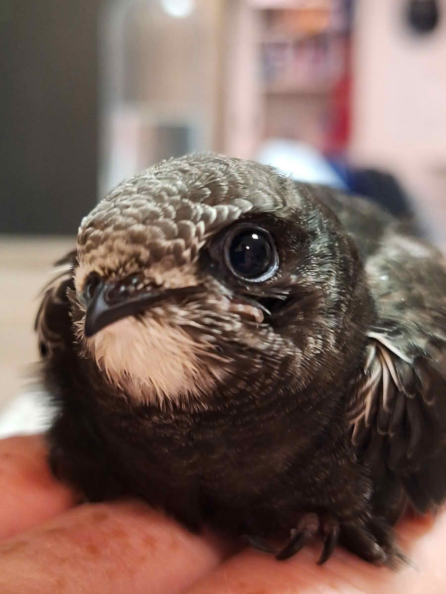 Nach einem Feuerwehreinsatz am 26. Juni entdeckten zwei Feuerwehrmänner beim Einrücken einen jungen Mauersegler, der geschwächt und hilflos im Hof der Wache lag.