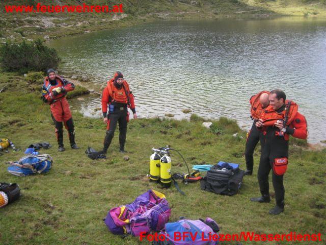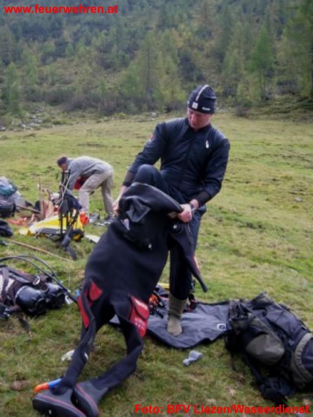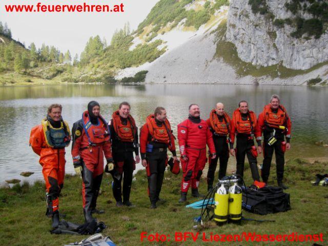 Am Samstag, den 03.10.2009 trafen sich um 8 Uhr früh in Tauplitz 8 Taucher und 10 Helfer der Feuerwehren im Bezirk Liezen zu einer etwas anderen Wasserdienstübung. Übungsannahme war die Suche nach einem vermissten Wanderer im Bereich Schwarzensee – Steirersee. Ziel dieser vom Wasserdienststützunkt Altaussee geplanten und organisierten Übung war die Erkundung der Zugangsmöglichkeiten zu den mit Fahrzeugen nicht erreichbaren Gebirgsseen im Tauplitzgebiet und das Kennenlernen der Gegebenheiten unter Wasser. Aber auch die Kameradschaftspflege sollte bei dieser, für 1 1/2 Tage anberaumten Übung nicht zu kurz kommen und so wurde ein gemeinsamer Abend mit Nächtigung auf der Tauplitzalm eingeplant.
