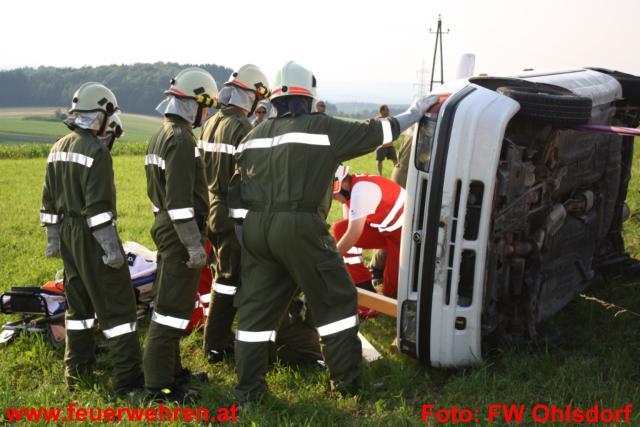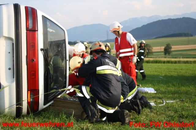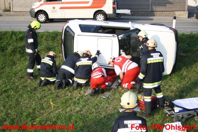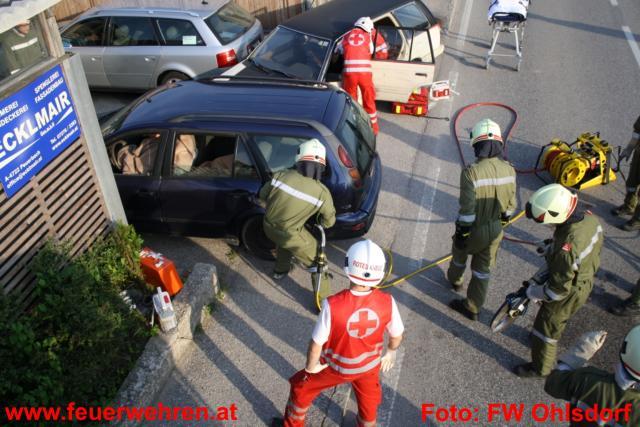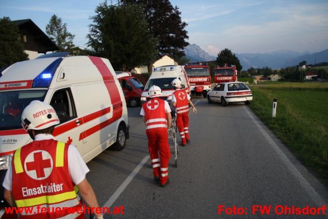 Um 19:03 Uhr wurden die Feuerwehren Ohlsdorf und Aurachkirchen von der Bezirkswarnstelle Gmunden zu einem Verkehrsunfall mit eingeklemmten Personen alarmiert. Zweitgleich mit den Einsatzkräften der Feuerwehr Ohlsdorf traf das Rote Kreuz Gmunden mit zwei Fahrzeugen an der Einsatzstelle ein.