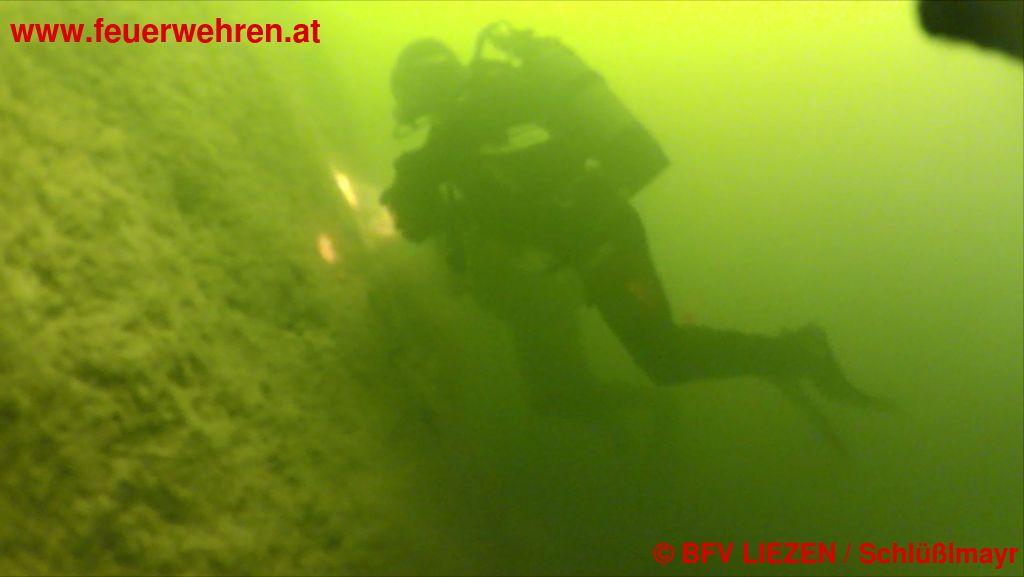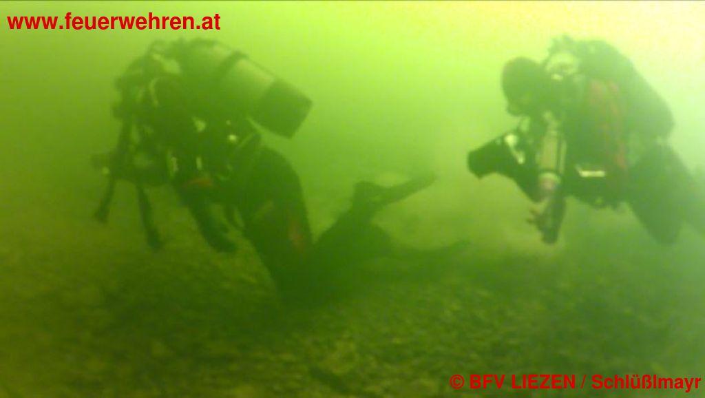 Nachdem die Einsatzstelle nicht begehbar war, wurden die Einsatztaucher kilometerweit mit den Feuerwehrbooten dorthin transportiert. Nachdem die leblose Person in rund 35 Metern Tiefe von einem Tauchtrupp lokalisiert werden konnte und die Stelle mit einer Boje markierte, wurde mit Hilfe der weiter eintreffenden Taucher die Person schließlich an einer Rettungsleine fixiert und vom Seegrund geborgen.