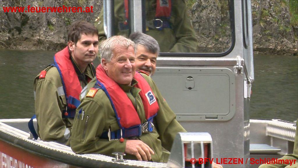 Unter den Übungsbeobachtern war neben LBDS Gerhard Pötsch und ABI Andreas Seebacher auch der neue Wasserdienst-Beauftragte des BFV Liezen: BM Wolfgang Gasperl (FF Altaussee); weiters Mitglieder der oberösterr. Wasserrettung und vom Roten Kreuz.