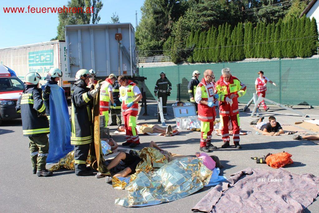 Die diesjährige Pflichtbereichsübung begann am 07. September 2013 mit einer Sekundenalarmierung der FF Lacken mit der Annahme eines Großbrandes im Abfallwirtschaftszentrum der Fa. Zellinger in Herzogsdorf. Als Übungsszenario wurden ein Großbrand der Papiersortieranlage mit vermissten Menschen und ein Verkehrsunfall mit eingeklemmten Personen erarbeitet. Insgesamt waren an dieser Großübung etwa 130 Einsatzkräfte von Feuerwehr, Rotem Kreuz und Samariterbund mit 20 Fahrzeugen sowie 13 Verletzendarsteller beteiligt.