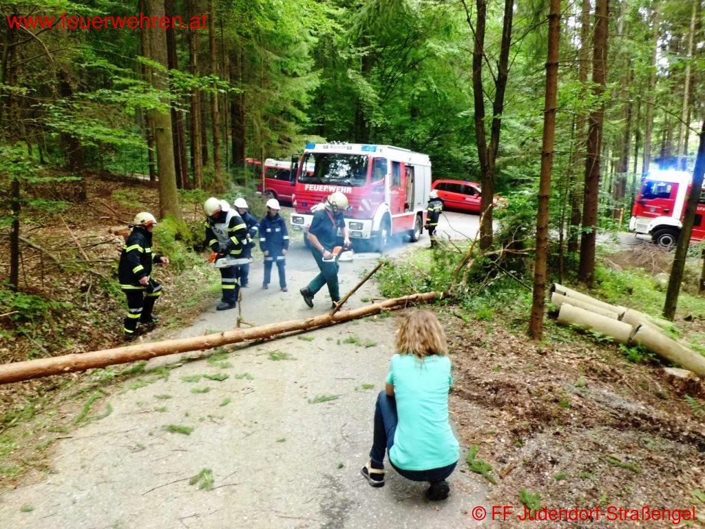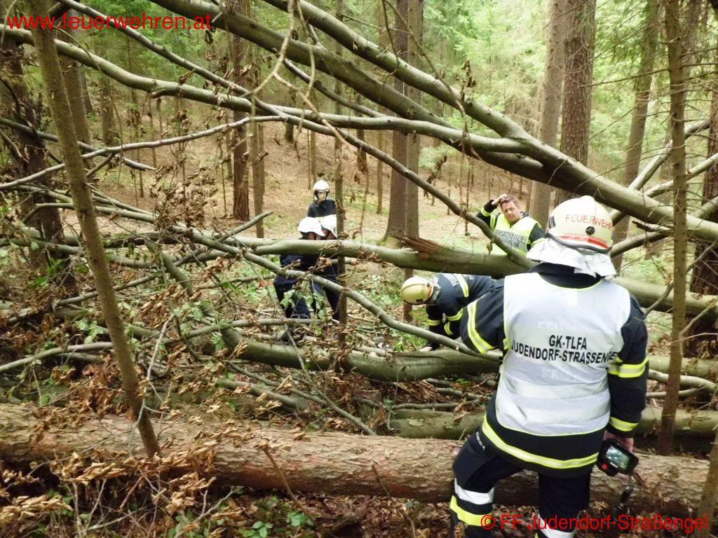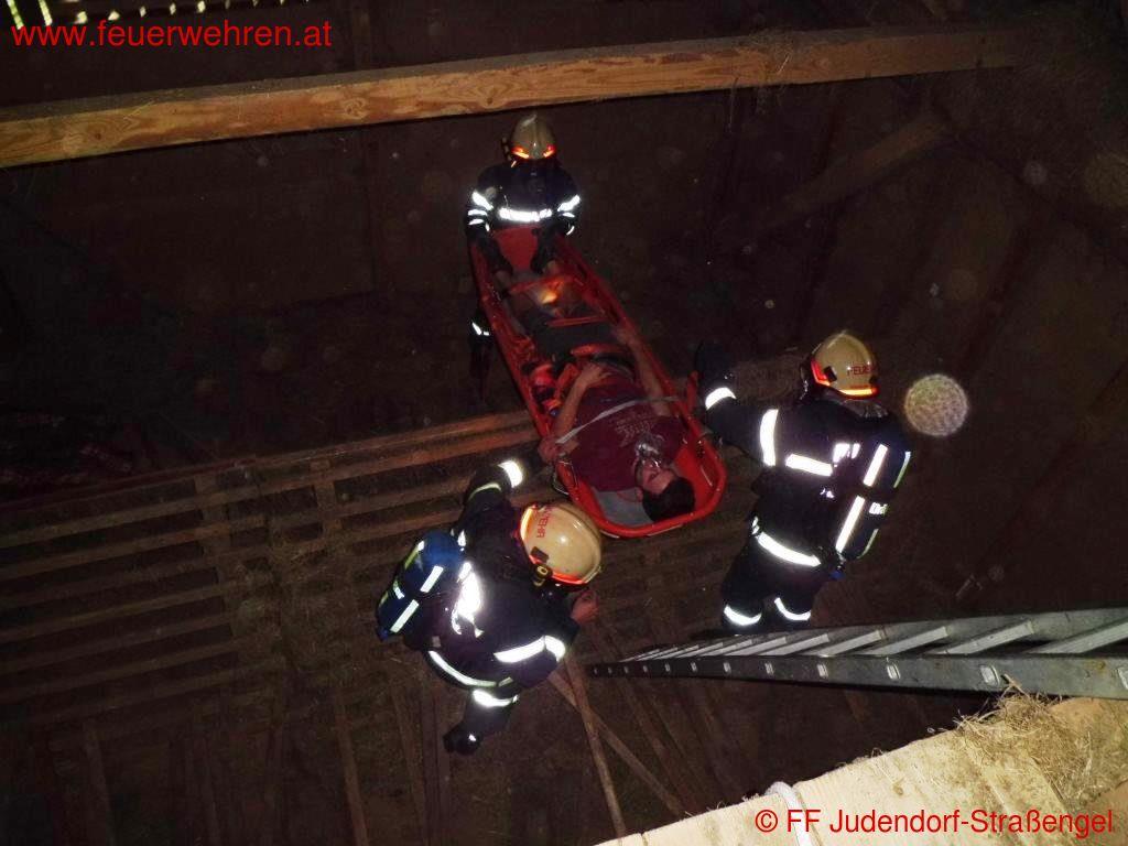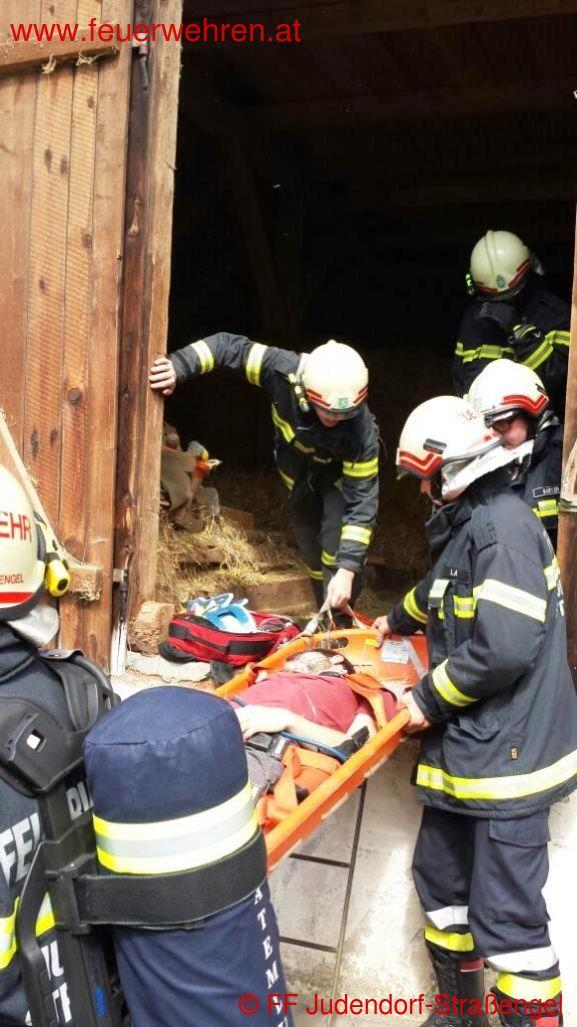 30 Mann der Freiwilligen Feuerwehr Judendorf-Straßengel rückten mit 5 Fahrzeugen unter der Leitung von HLM Ing. Rainer Pongratz zum Einsatzort, im Konvoi aus. Kurz vorm Einsatzort versperrten mehrere umgestürzte Bäume die Zufahrt zu den Wirtschaftsgebäuden. Sofort reagierte der Einsatzleiter und lies die Bäume mittels Motorkettensägen entfernen. Am eigentlichen Einsatzort angekommen, erwarteten den Einsatzkräften aufgeregte Bewohner, welche sofort bekannt gaben, dass eine Person in den Silo gestürzt ist.
