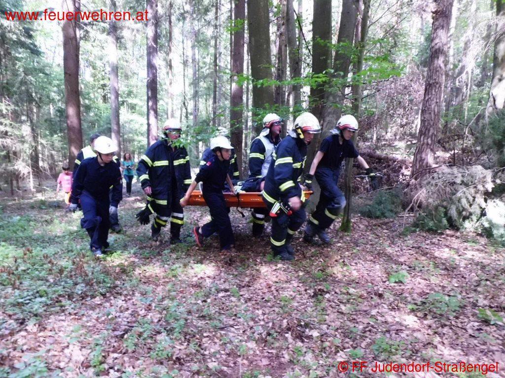 Als erste Sicherheitsmaßnahme wurde großräumig im Wald eine Sicherheitszone mittels Absperrband errichtet. Mittels einer Suchkette von Feuerwehrmännern und der Wärmebildkamera wurde der verletzte Waldarbeiter rasch gefunden. Nachdem die Person ansprechbar war, konnte die Rettung ebenfalls mit einer Korbschleiftrage durchgeführt und anschließend den Feuerwehrärzten übergeben werden.