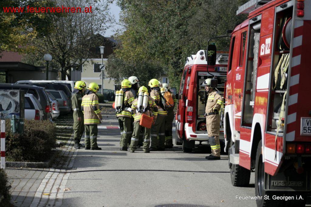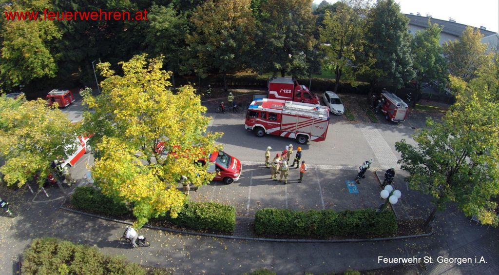 Am Samstag, den 11. Oktober 2014 führte die Feuerwehr St. Georgen die alljährliche Pflichtbereichsübung durch. Um 14:00 wurden die Feuerwehren von St. Georgen – FF St. Georgen, FF Kogl, FF Thalham-Bergham und FF Alkersdorf – zu einem Brand in die neue Mittelschule in St. Georgen alarmiert.