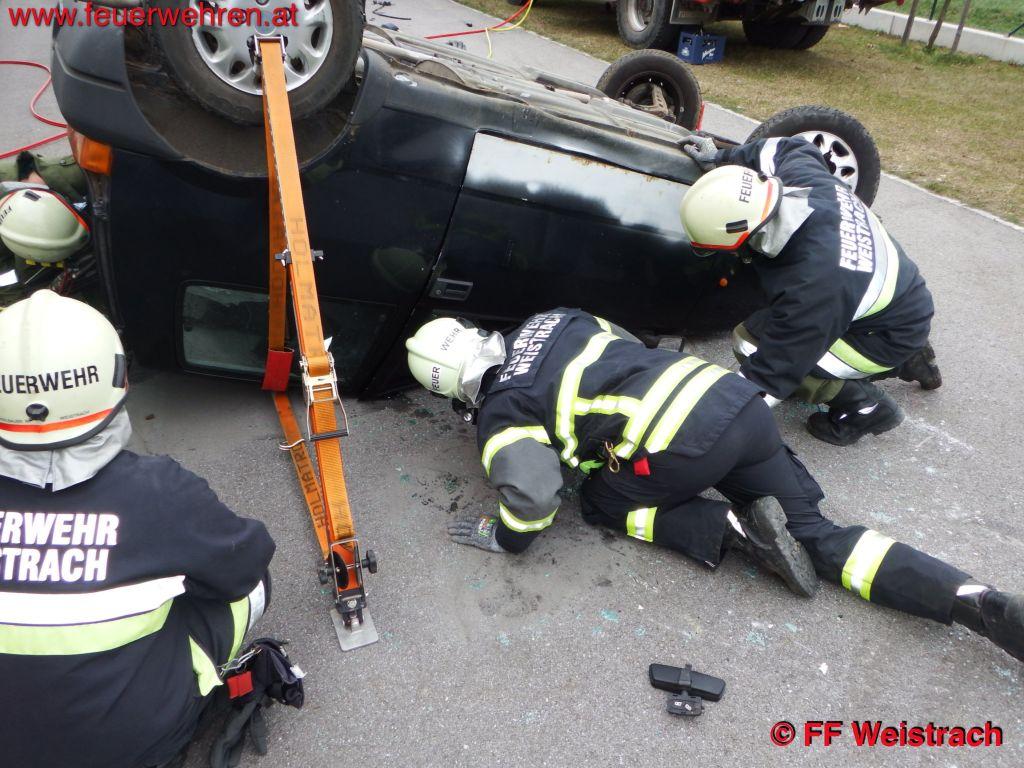 Bei diesen 4 Stationen konnten die Weistracher Feuerwehrmänner die verschiedensten Rettungstechniken in der Praxis testen und das Verhalten der hydraulischen Rettungsgeräte Spreizer/Schere/Stempel besser kennenlernen.