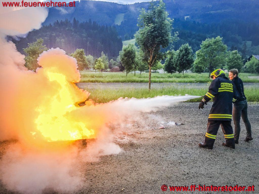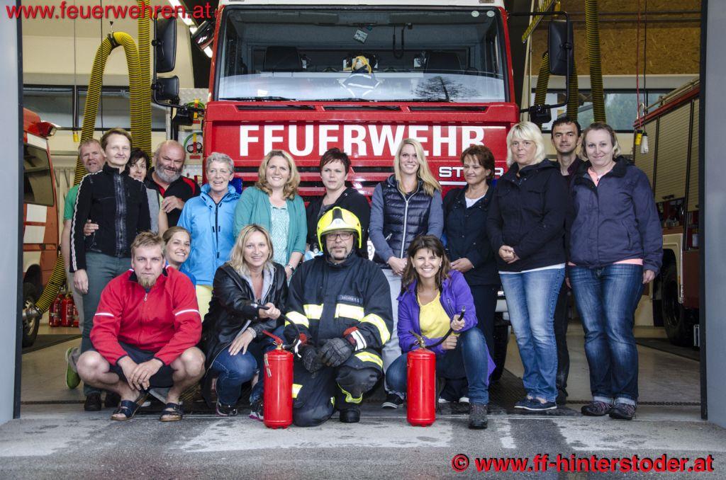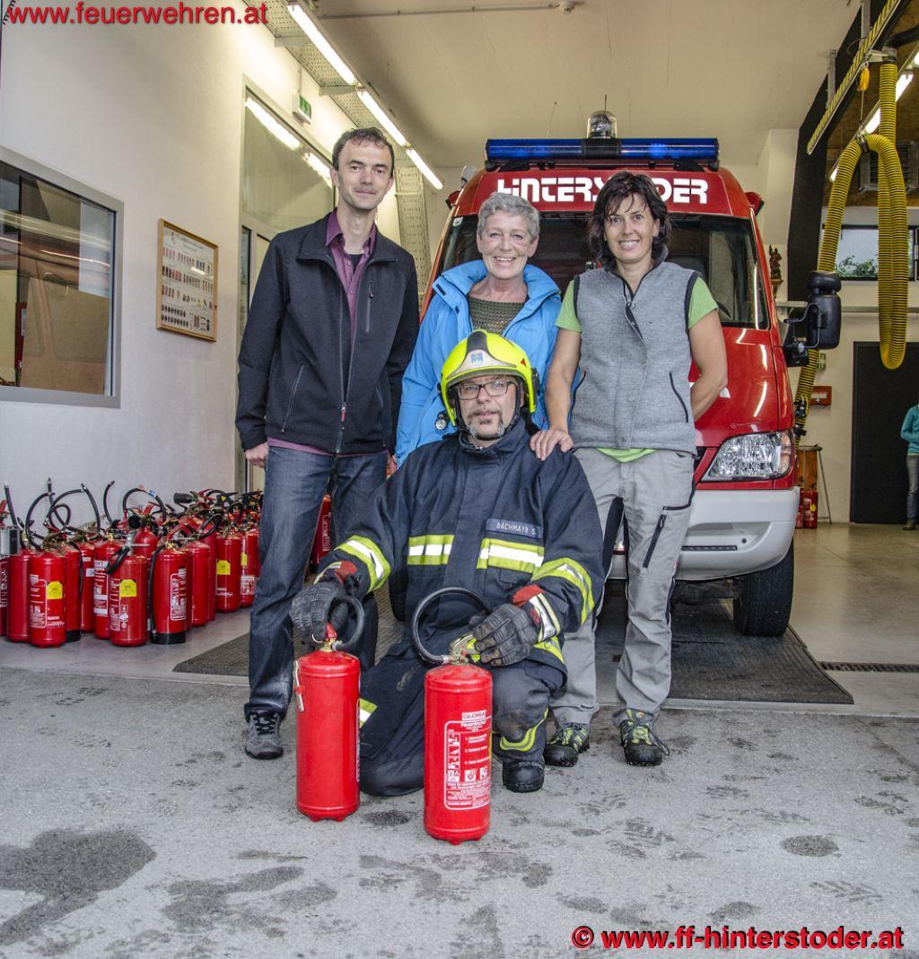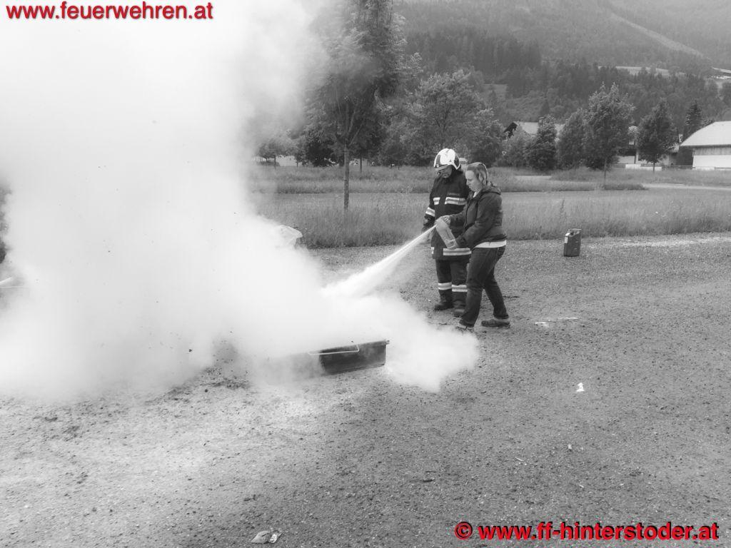 Im Vorfeld der Feuerlöscher-Überprüfungsaktion 2015 der Feuerwehr Hinterstoder wurden die Mitarbeiter des Gemeindeamtes, des Kindergartens, der Volksschule sowie des Bauhofs im richtigen Umgang mit einem Handfeuerlöscher geschult.