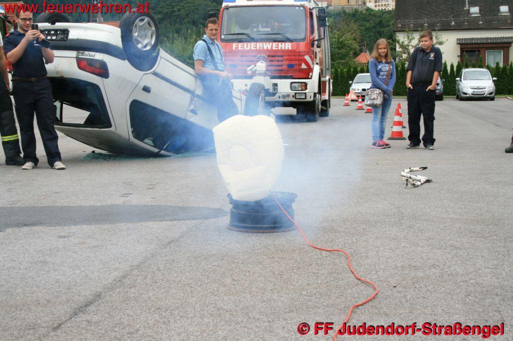Am Samstag, 19.09.2015 startete am Vormittag eine kurze theoretische Lehreinheit. Dann folgte ein Vortrag über die richtige Verkehrsabsicherung und den Einsatz von Ölbindemittel. Das erste Mal Action gab es, als mehrere Airbags ausgelöst wurden, um gleichzeitig auch auf die Auslösevorrichtungen und Sicherheitsabstände hinzuweisen.