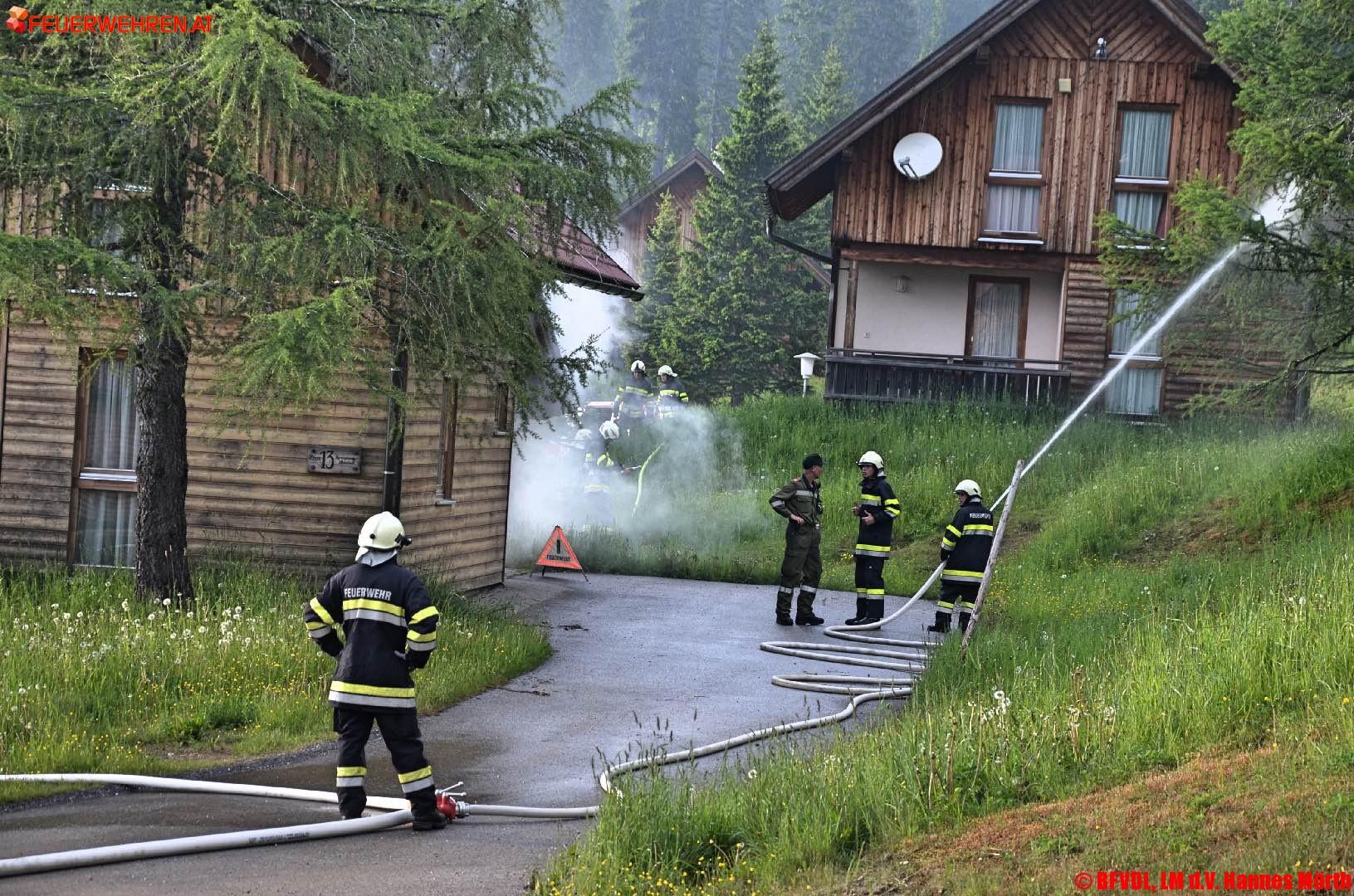 Ferienhaus auf der Weinebene in Vollbrand. So lautete der Übungsbefehl für 4 Feuerwehren aus der Steiermark und aus Kärnten.