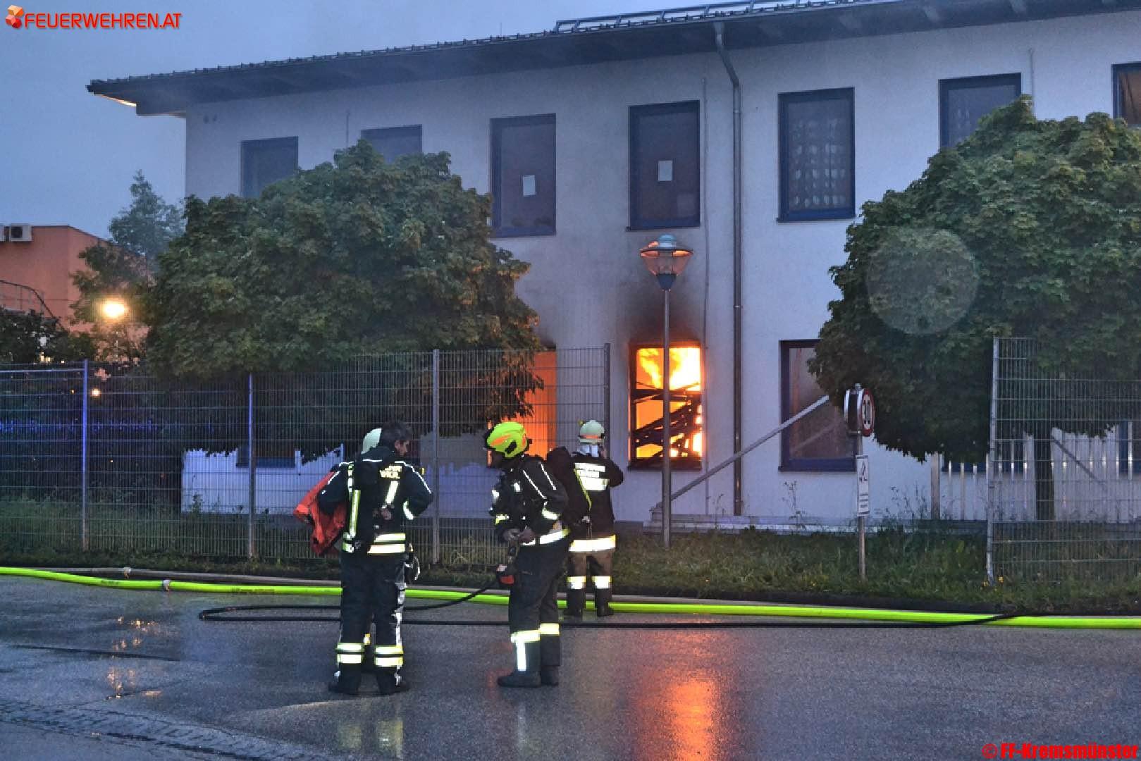 Übungsannahme war ein Brand im Bürogebäude. Hierzu konnte in einen Raum ein echtes Feuer gelegt werden, um die Atemschutztrupps an solche Situationen zu gewöhnen. Nebenbei galt es, mehrere Personen aus dem Gebäude zu retten und den Rot Kreuz Kräften zu übergeben. Anschließend wurde ein umfassender Löschangriff um das Gebäude gestartet.