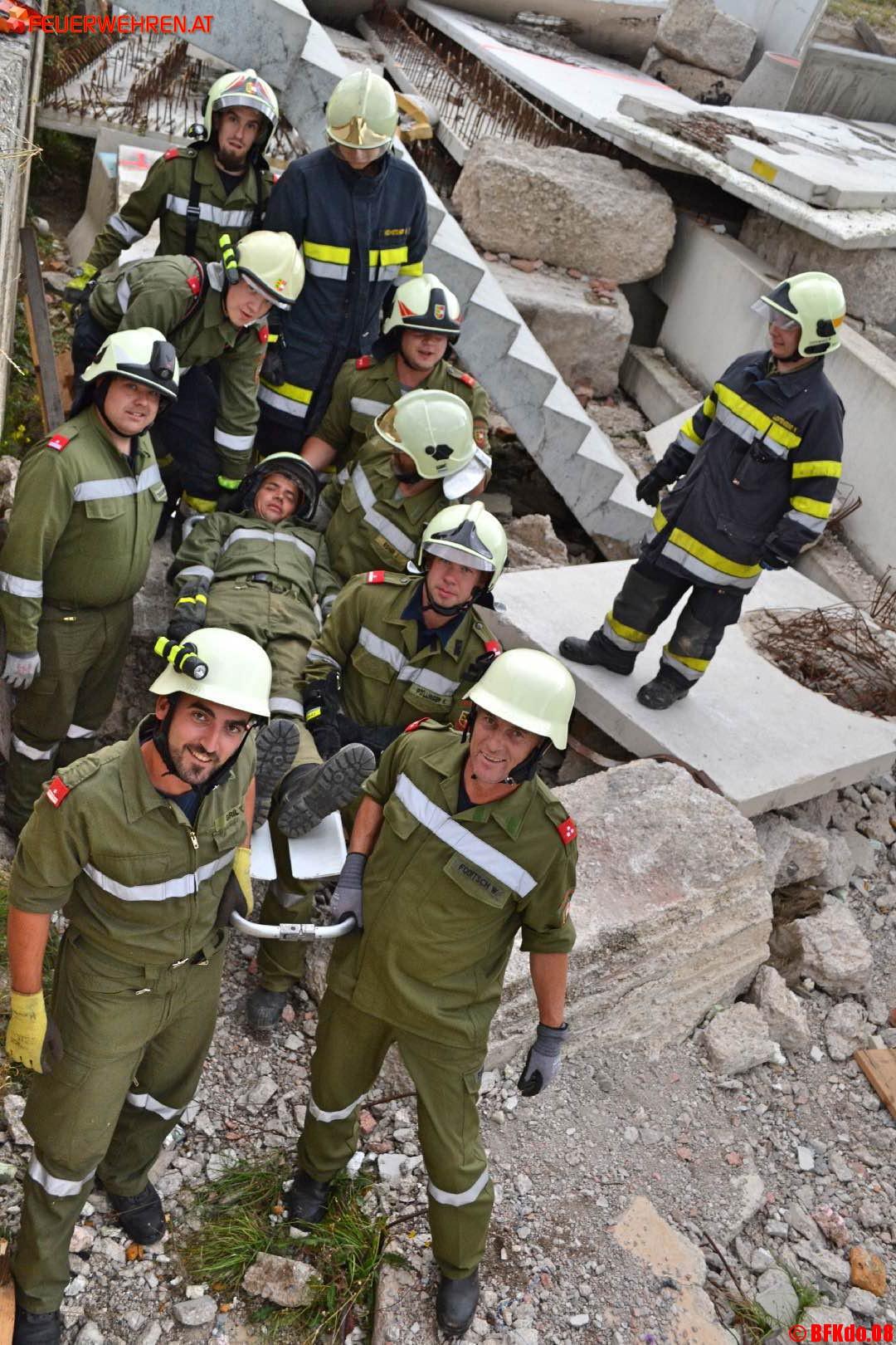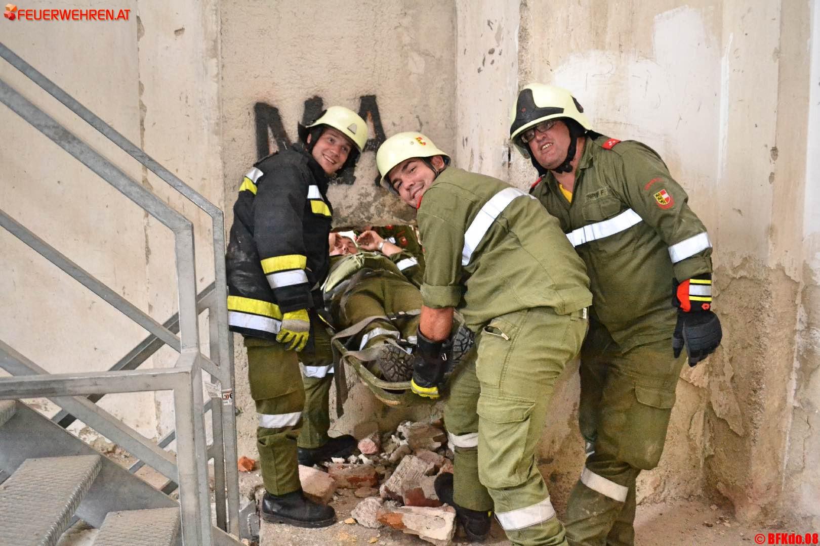In verschiedenen Szenarien galt es durch den Einsatz von hydraulischen Rettungsgeräten, Hebekissen, Seilwinden und Greifzügen Personen aus gewaltigen Trümmerkegeln zu bergen. Autobrände mussten gelöscht, Keller ausgepumpt werden. Gemeinsam mit der österreichischen Rettungshundebrigade (Staffel Glantal) wurden eingeschlossene Menschen in eingestürzten Kellern, Gebäuden und Stollen gesucht und teilweise mit schweren Atemschutz befreit. Die Höhenrettung der Feuerwehr Baden-Weikersdorf unterstützte bei der Sicherung und Rettung von Personen aus tiefen Schächten und großen Höhen. Immer wieder war die Mannschaft aber auch gefordert alternative Auf- und Ausstiegswege sowie Zugangsmöglichkeiten zu finden.