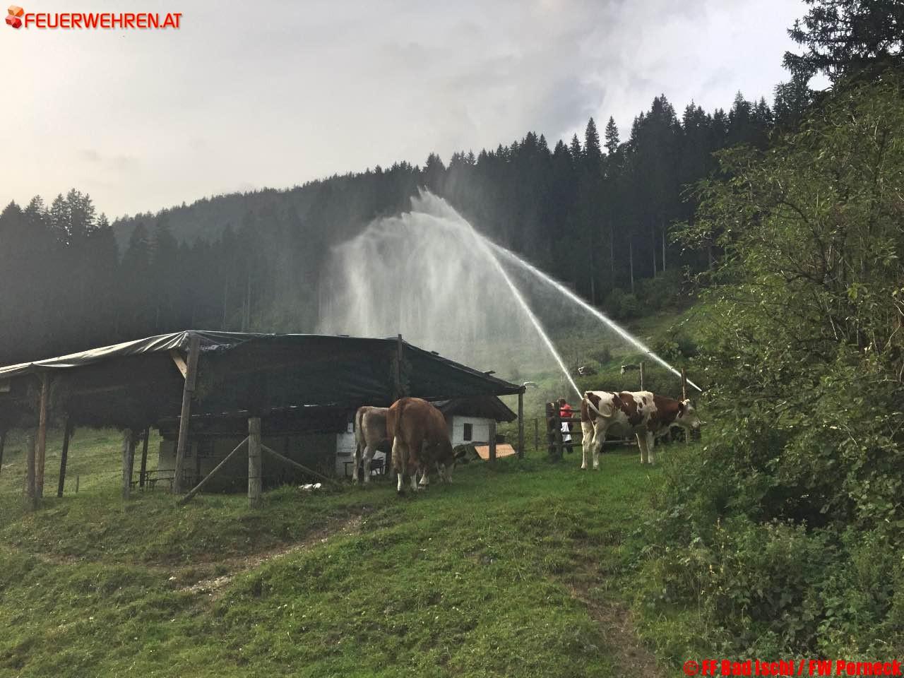 In diesem Jahr wurde ausnahmsweise nicht in Perneck, jedoch gemeinsam mit der Aktivmannschaft, geübt. Die Familie Stögner aus Eck lud die Kameraden der Feuerwache Perneck zu einer Übung bei Ihrer Hütte in der Rettenbachalm ein.