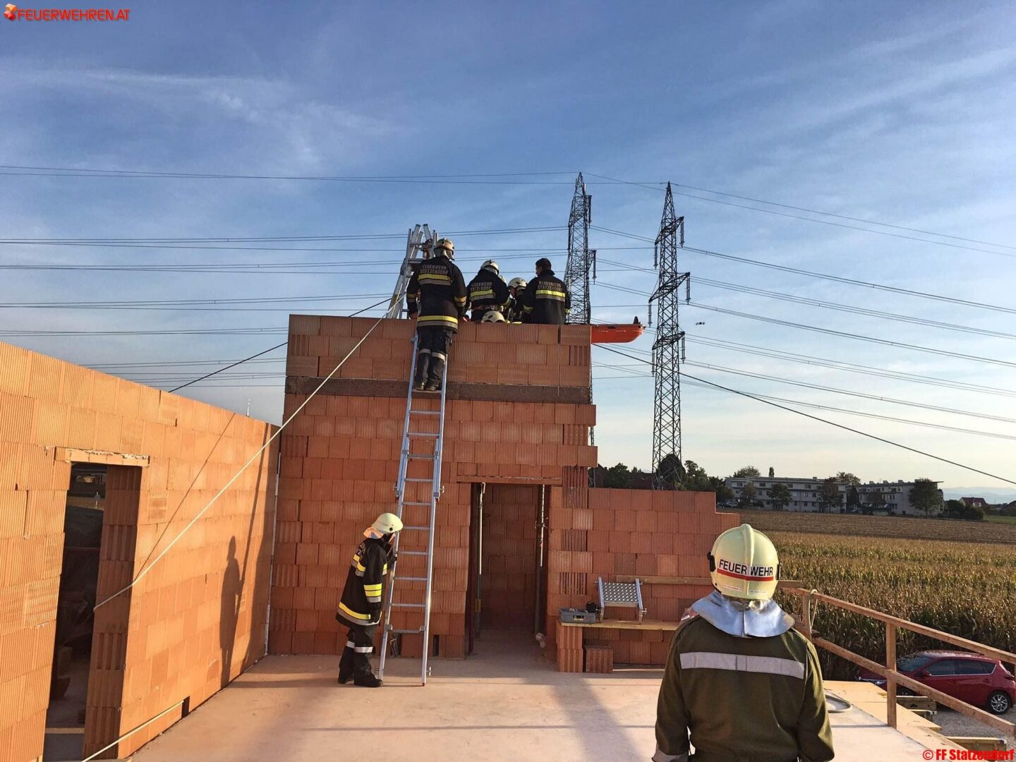Übungsannahme war eine Person in Notlage am Schlauch- bzw. Übungsturm des neuen Feuerwehrhauses. Weiters waren zwei Personen unter einer eingestürzten Schalungswand eingeschlossen. Diese wurden mittels Hebekissen und den Rettungssätzen der Feuerwehren Kuffern und Statzendorf aus ihrer misslichen Lage befreit.