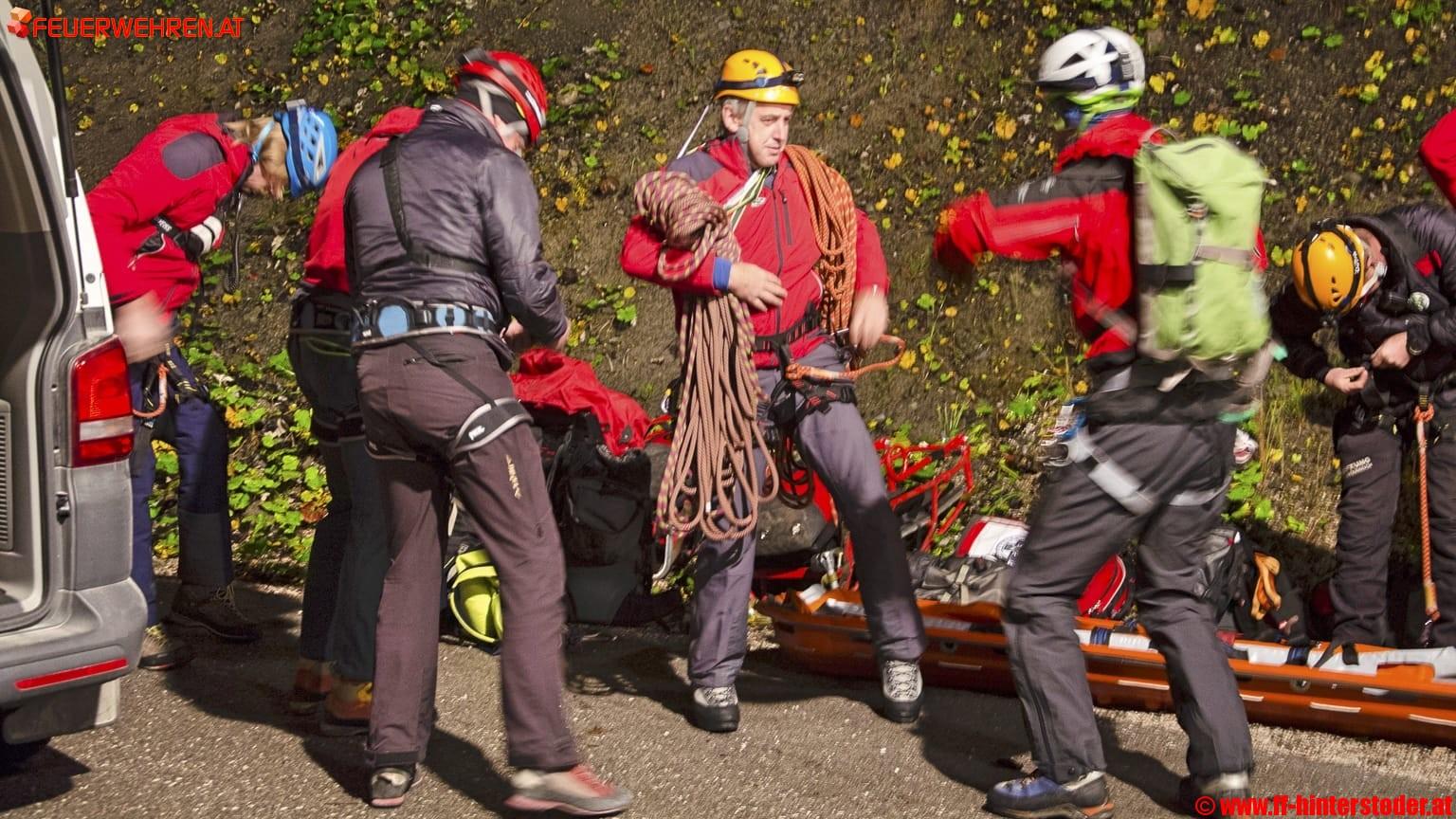 Beim Eintreffen an der Unfallstelle konnte sich der Notarzt einen Überblick über den Schweregrad der verletzten Personen schaffen und eine Prioritätenreihung vornehmen. Gleichzeitig wurden von der Bergrettung ein Seilgeländer und die Gerätschaften zum Abseilen des weiteren Materials für die Personenrettung aufgebaut.