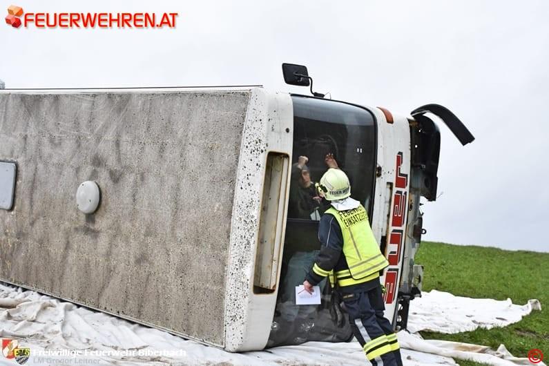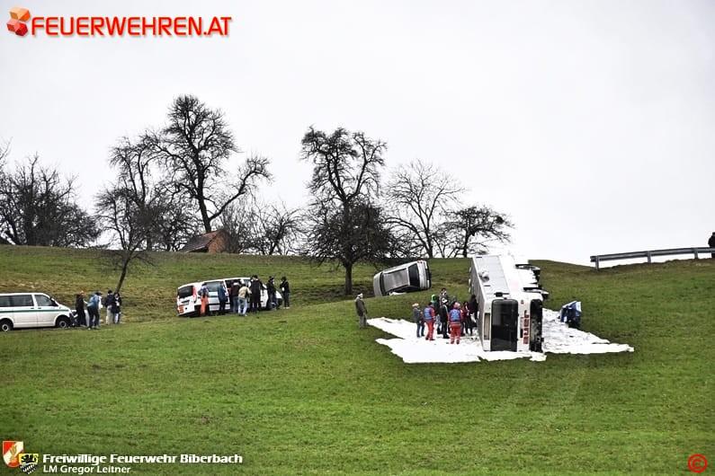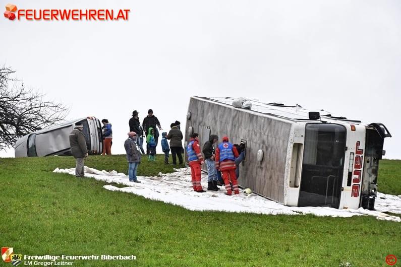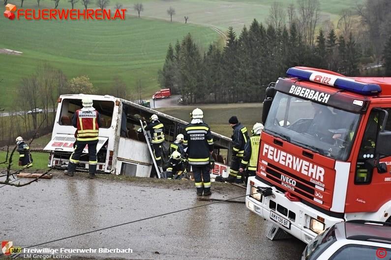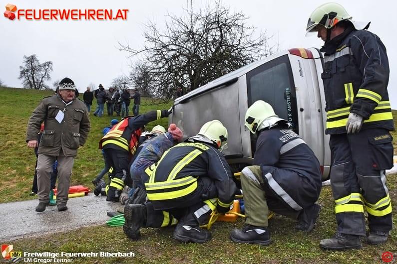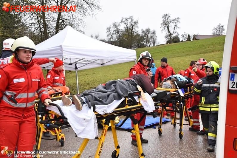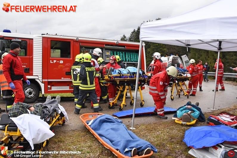 Durch die ausgezeichnete Zusammenarbeit der Einsatzorganisationen konnte das Szenario innerhalb kürzester Zeit abgearbeitet werden. Nur rund 45 Minuten nach Eintreffen der ersten Einsatzkräfte konnten alle Verletzten aus den PKWs sowie dem Bus befreit werden. Die vermissten Personen konnten gemeinsam von Feuerwehr, Rettung und Suchhundestaffel gefunden werden. Alle Verletztendarsteller wurden in das Feuerwehrhaus Biberbach, das als „Krankenhaus“ diente, abtransportiert. Die Bergung des Busses wurde von den sechs Feuerwehren gemeinsam durchgeführt.