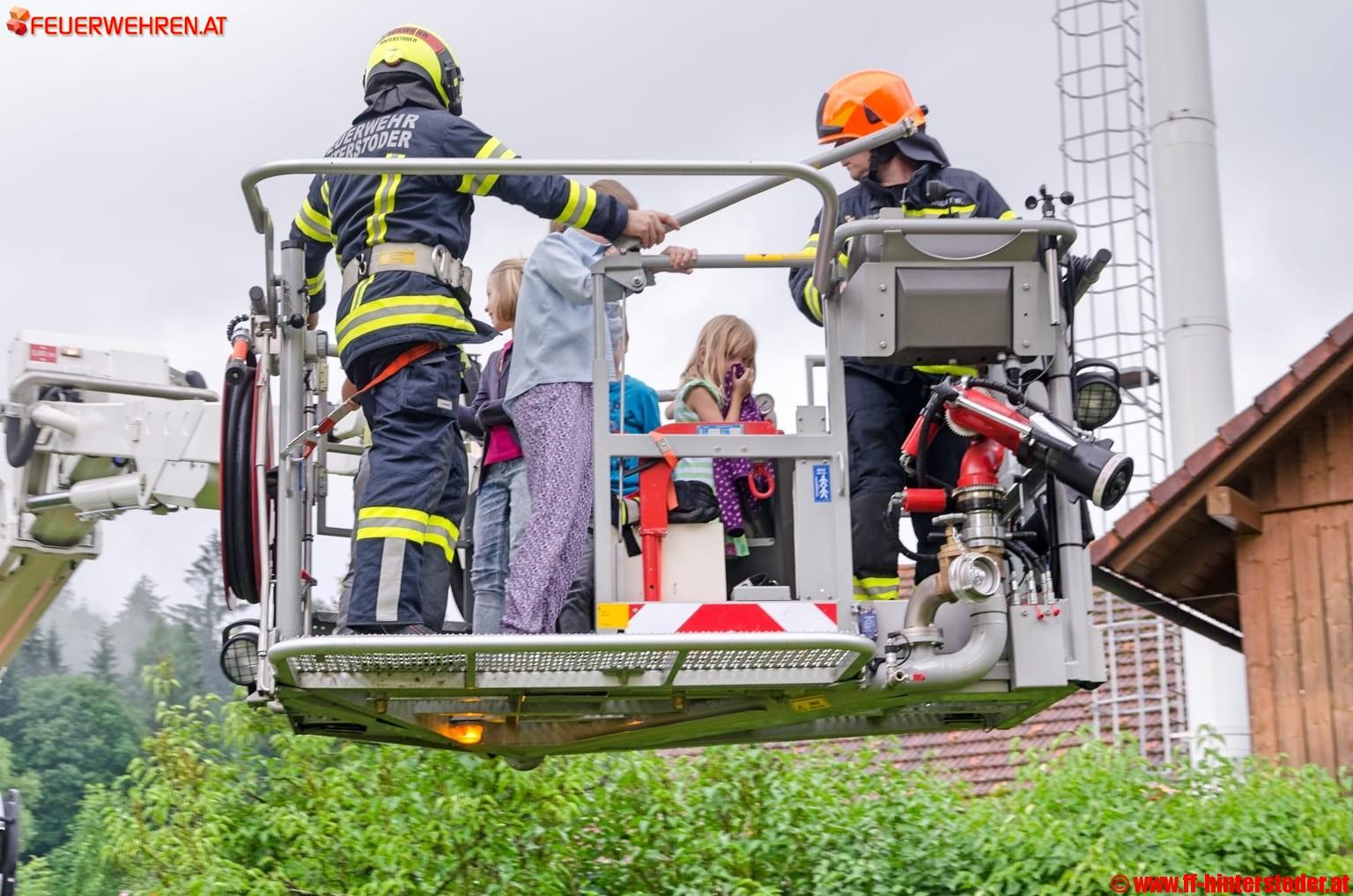 Gleichzeitig wurden die Kinder mit Hilfe des Hubrettungsgerätes Spital am Pyhrn ins Freie gebracht. Schon nach kurzer Zeit waren alle Kinder gerettet und die 2 vermissten Personen gefunden.