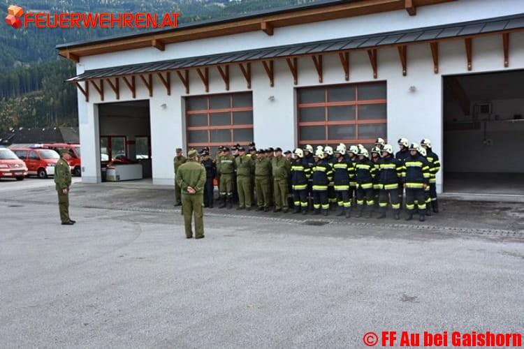 Dies war die Übungsannahme für die am Mittwoch den 25.10.2017 stattgefundenen Abschnittsübung der Feuerwehren des Paltentals. Begonnen mit einer Schauübung, vorgetragen von den Kameradinnen und Kameraden der FF Au, sowie einer darauf folgenden Einweisung der Delegierten in den geplanten Übungsablauf, wurden gegen 15.45 Uhr die Feuerwehren Au, BTF Mayr-Melnhof, Gaishorn, Treglwang, Trieben Stadt, BTF Trieben, Dietmannsdorf und St. Lorenzen im Paltental zur Übung alarmiert.