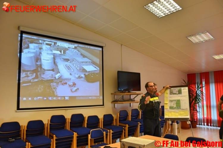 Die Übungsnachbesprechung unter der Leitung von ABI Franz Haberl sowie Brandrat Heinz Hartl fand im Anschluss wiederum um Rüsthaus Au statt, wo von den jeweiligen Gruppenkommandanten alle positiven Eindrücke und Möglichkeiten zur Verbesserung aufgezeigt wurden.