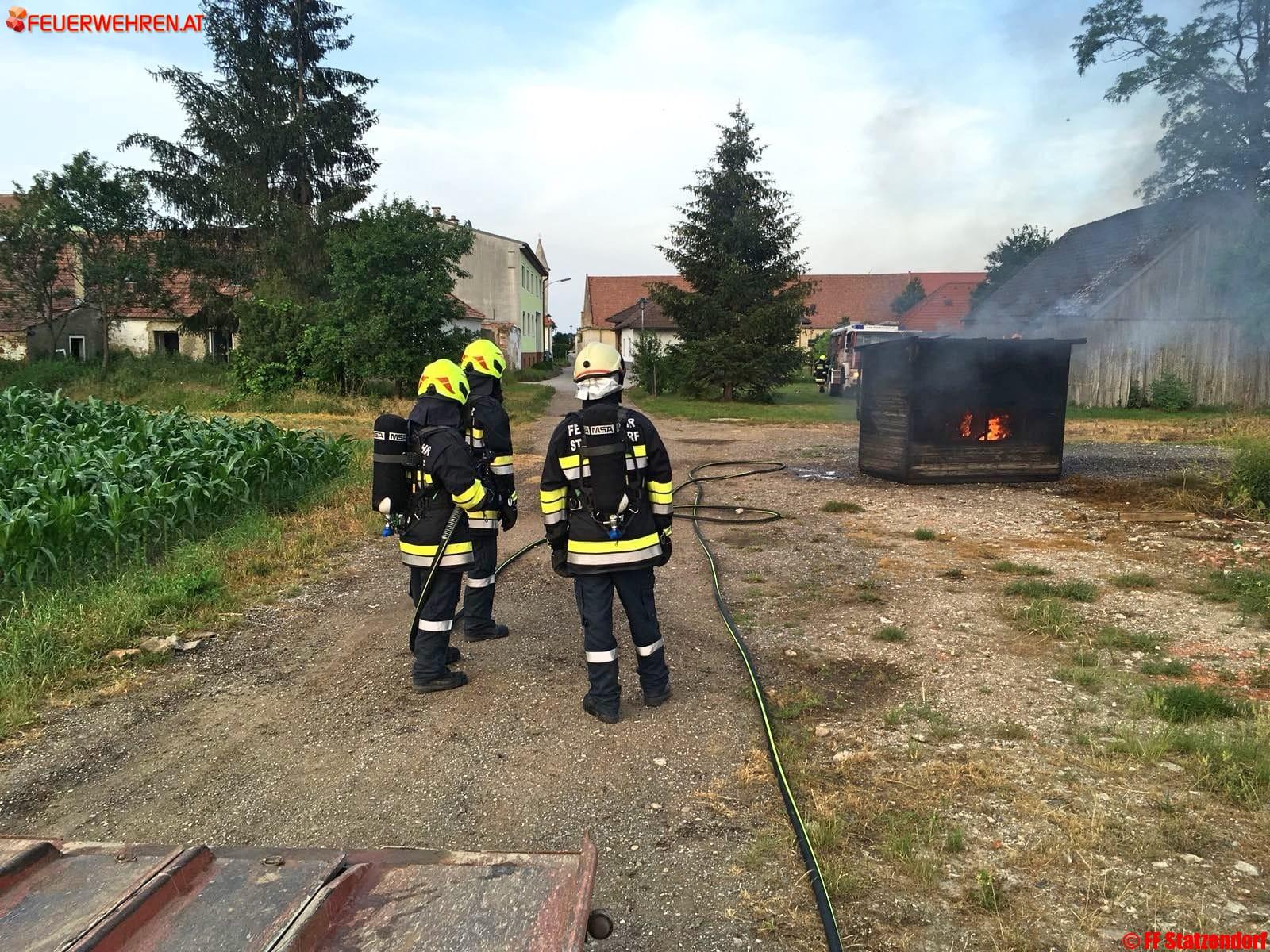 Kleinbrand in Absdorf in der Helenengasse 8, so lautete die Alarmierung zur Branddienstübung am Montag, den 11. Juni. Unverzüglich rückten Tank, Rüstlösch und Bus Statzendorf laut interner Ausrückeordnung zum Übungsobjekt aus. Bereits während der Anfahrt rüstete sich ein Atemschutztrupp aus. Bei Ankunft am Übungsort nahm der Gruppenkommandant die Erkundung vor und erteilte sofort einen Einsatzbefehl.