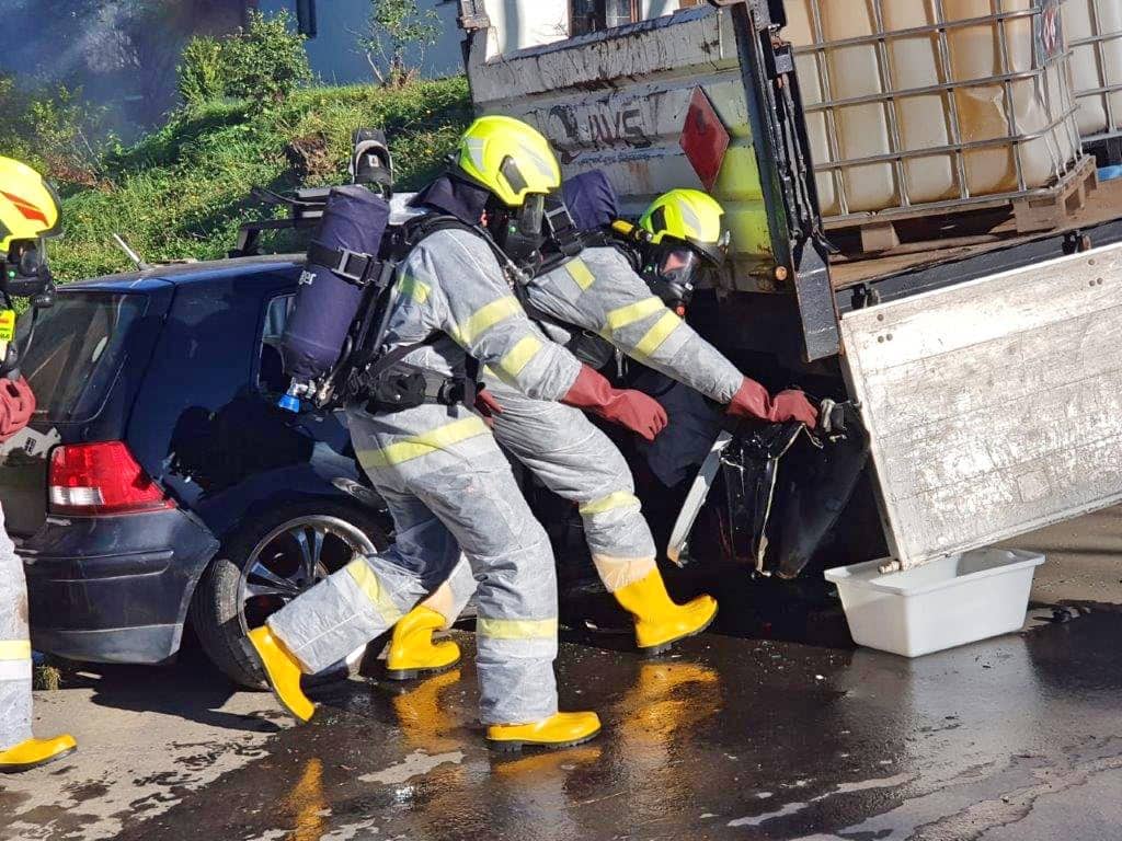 Die Feuerwehren des Abschnitts 4 St Stefan ob Leoben übten am Freitag, dem 11. Oktober den Ernstfall. Übungsszenario war, dass sich ein nicht ortskundiger Lastkraftwagenfahrer in die Hinterlobming verfuhr. Beim Reversieren am Dorfplatz Hinterlobming übersieht dieser einen PKW. Es kommt zum Unfall bei dem der Lenker des PKWs in seinem Fahrzeug eingeklemmt wurde. Am LKW verschiebt sich beim Zusammenstoß die Ladung und Gefahrgut tritt aus. Der Lenker des Lastkraftwagens bricht daraufhin bewusstlos auf der Ladefläche zusammen.
