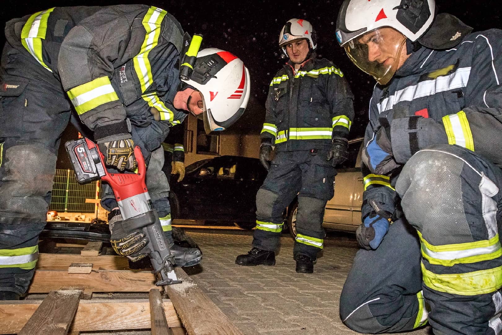 Feuerwehr übt mit Schneid- und Trenngeräten
